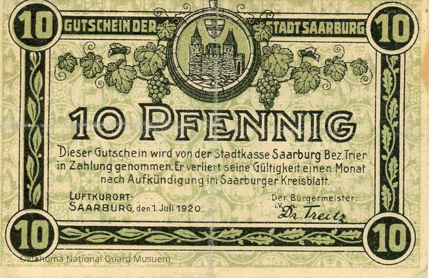 German City of Saarburg Ten Pfennig Notgeld-1920Context