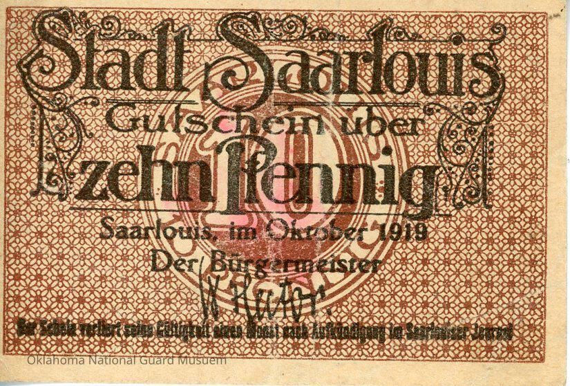 German City of Saarlouis Ten Pfennig Notgeld-1919Context