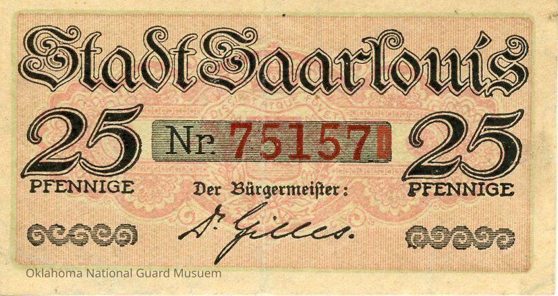 German City of Saarlouis Twenty-Five Pfennig Notgeld-1918Context