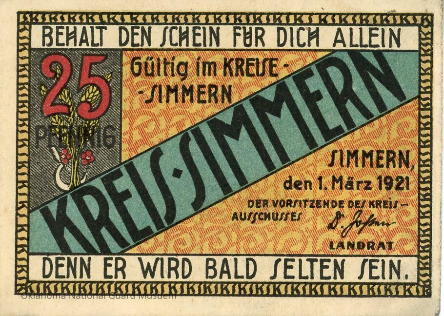 German City of Simmern Twenty-Five Pfennig Notgeld-1921Context