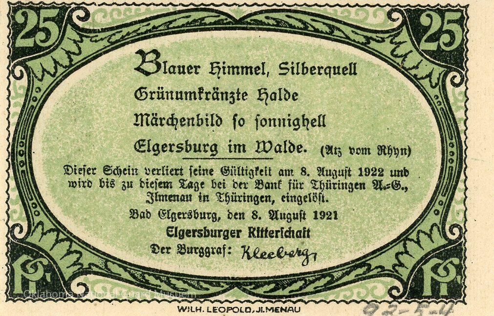 German Municipality of Elgersburg Twenty-Five Pfennig NotgeldEntry/Object ID