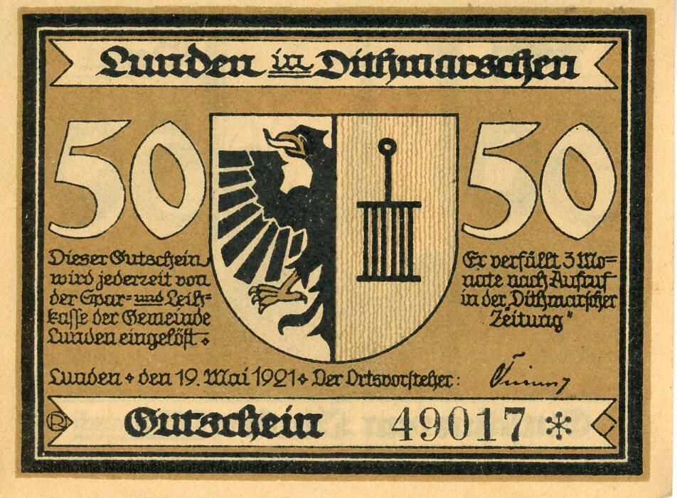 German Municipality of Lunden Fifty Pfennig Notgeld-1921Context