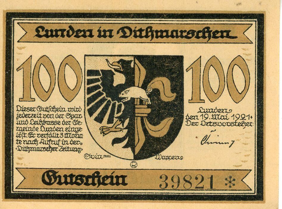 German Municipality of Lunden One Mark Notgeld-1921Context