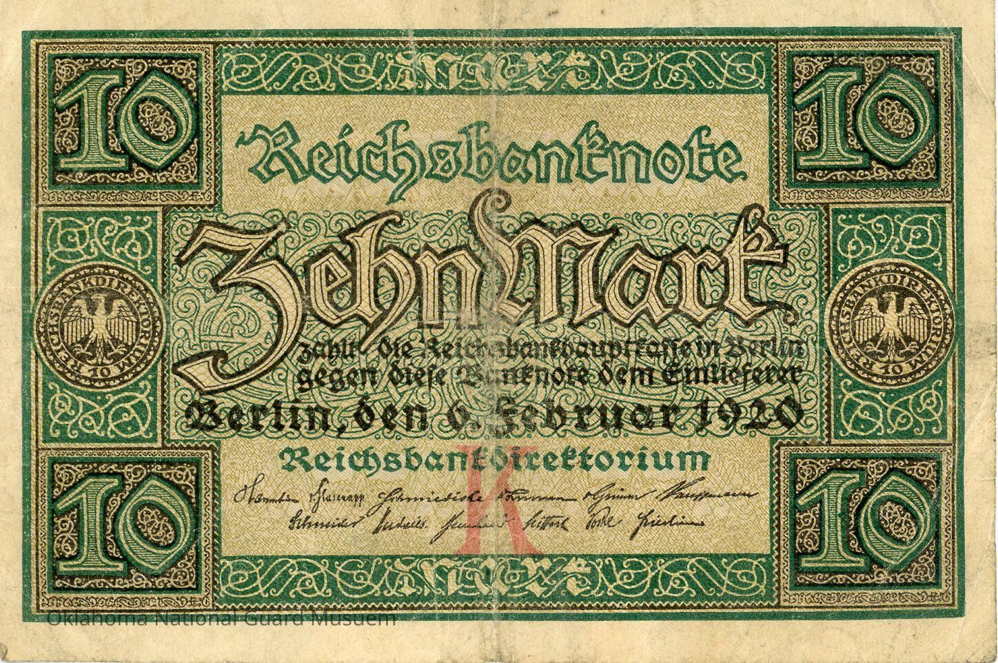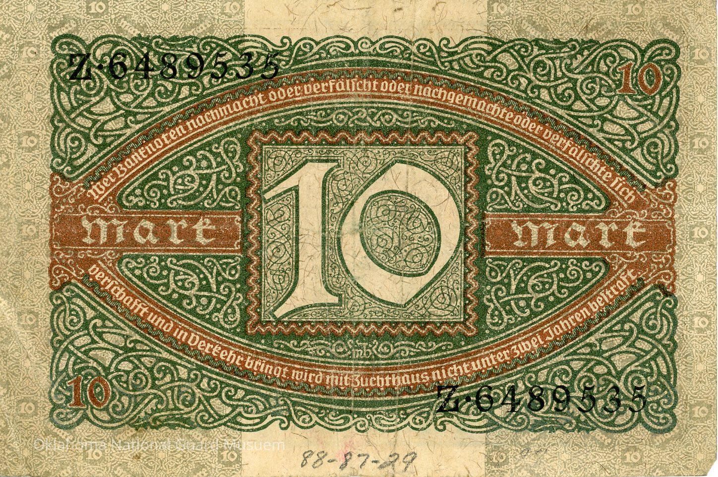 The Reichsbank Main Branch in Berlin will pay the holder of this note 10 Marks.
