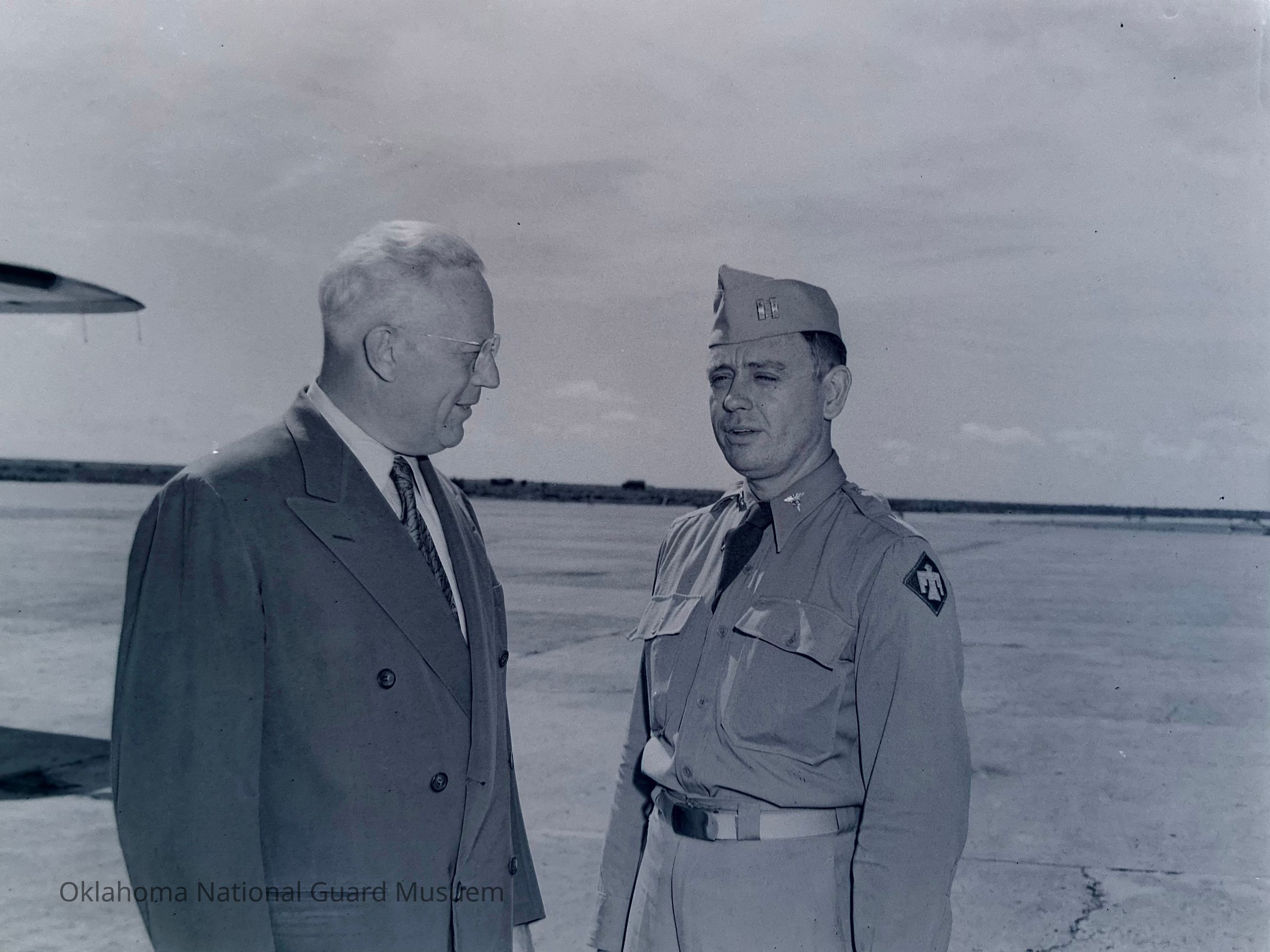 Negative of Govenor Earl Warren visiting with a soldier Hokkaido, Japan