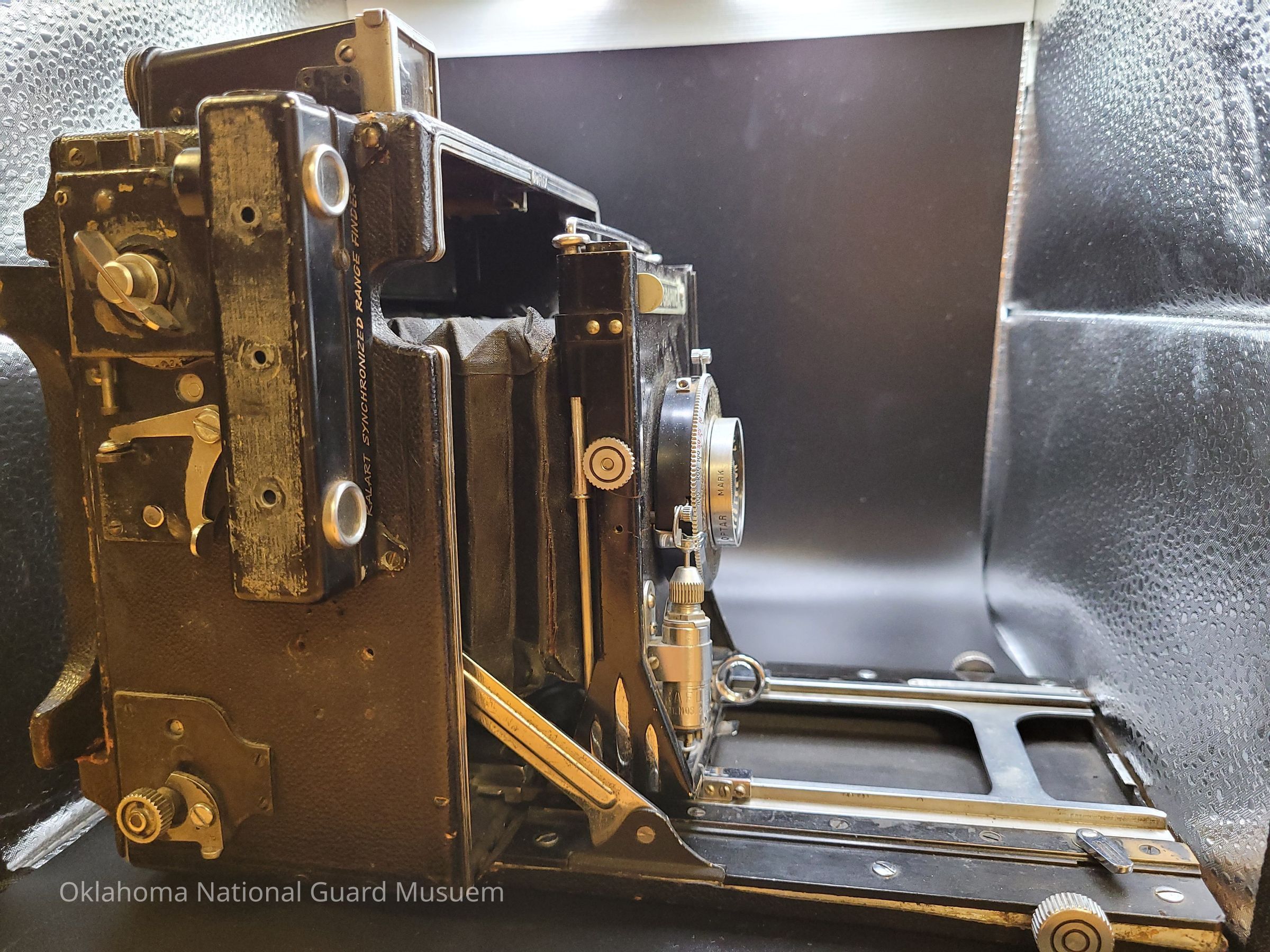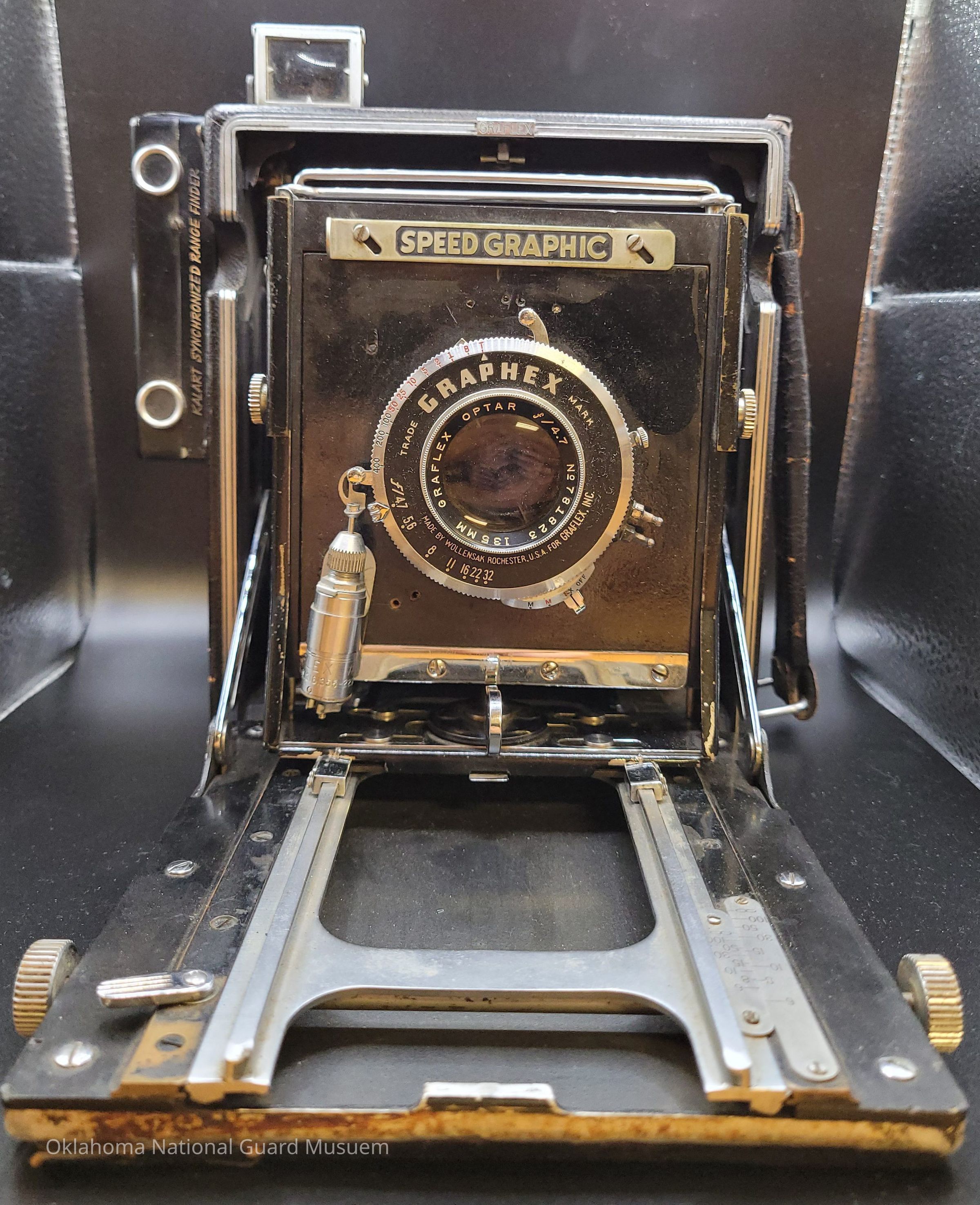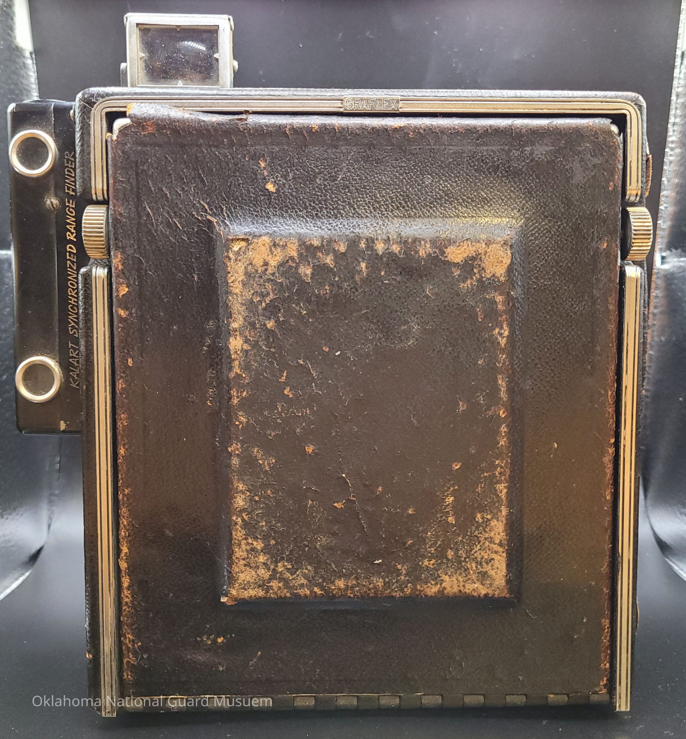 Graphlex Anniversary Speed Graphic used by Geroge Tapscott, 45th Division photographer, throughout World War Two. Most notably, Tapscott used this camera to photograph the Dachau Concentration Camp