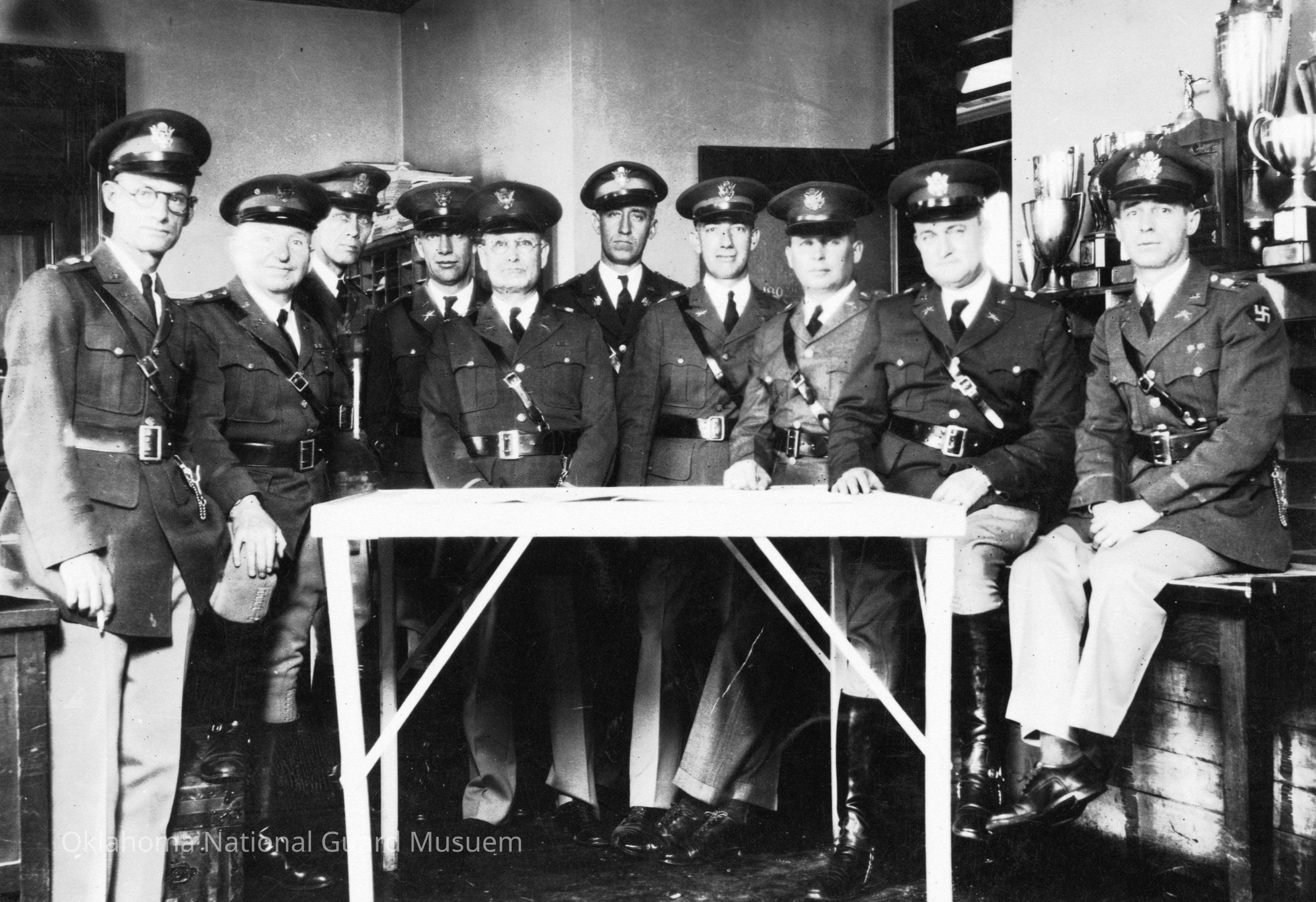 Group of officers around a table. Raymond Mclain (right), James Styron (2nd from right)