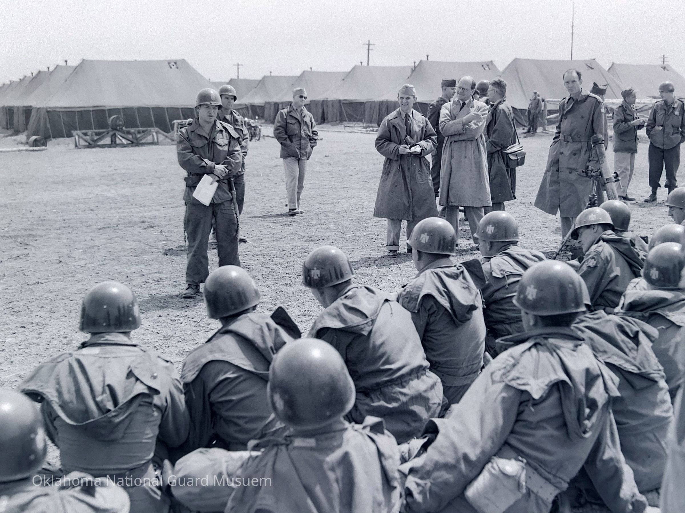 Negative of a group of soldiers addressed by an NCO on Hokkaido, Japan