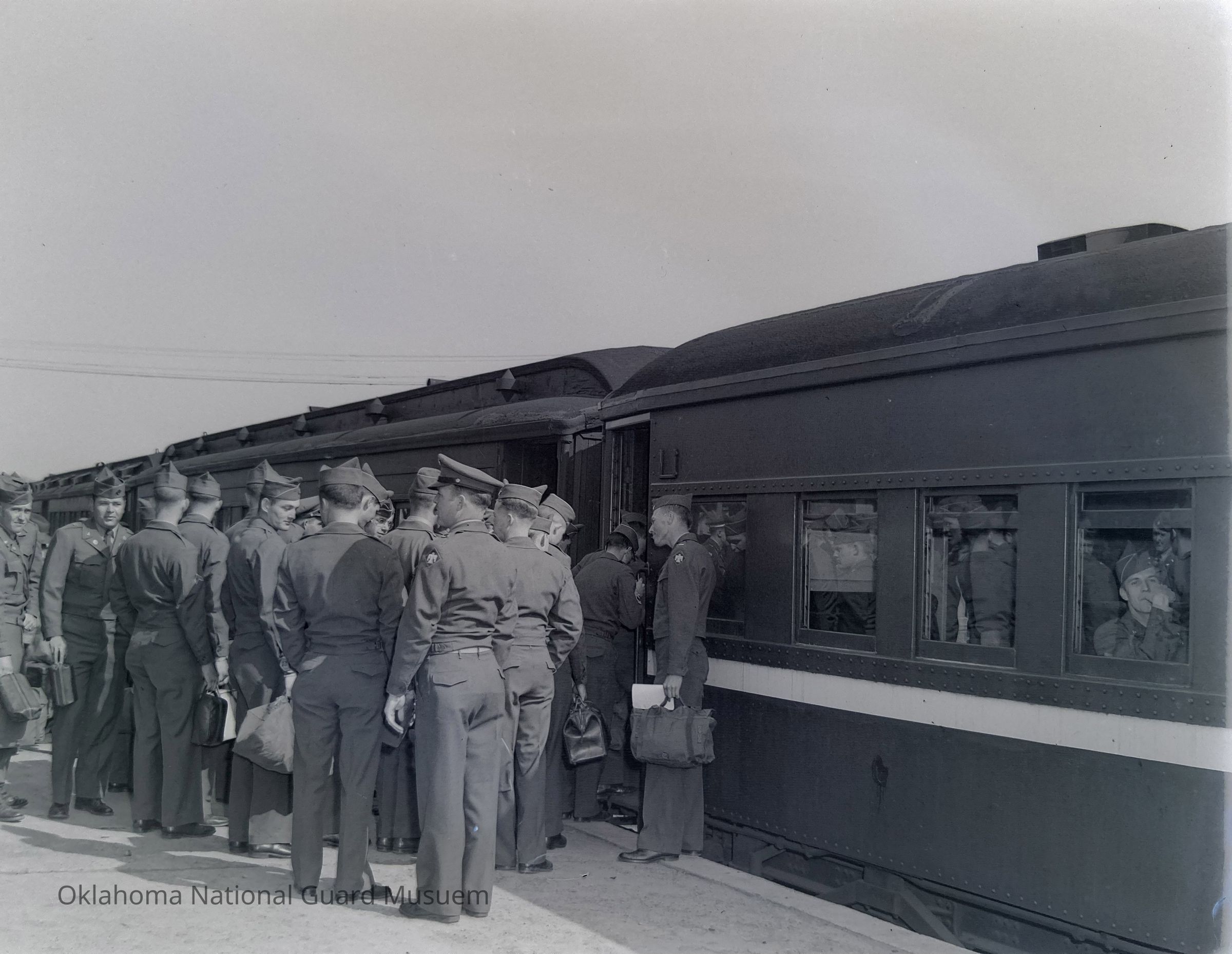 Group of soldiers boarding a train