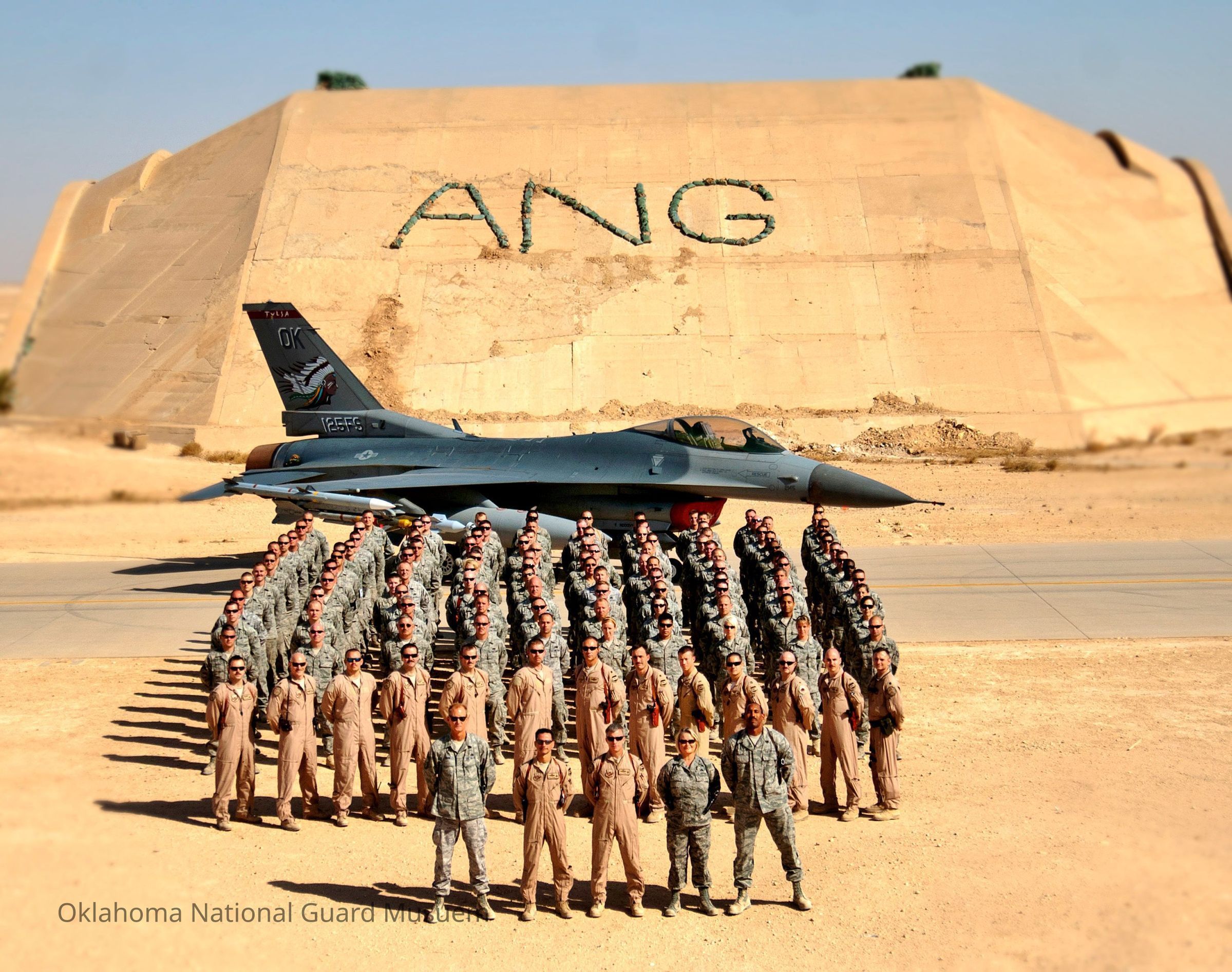 Group photo of the 125th Expeditionary Fighter Squadron in front of F-16
