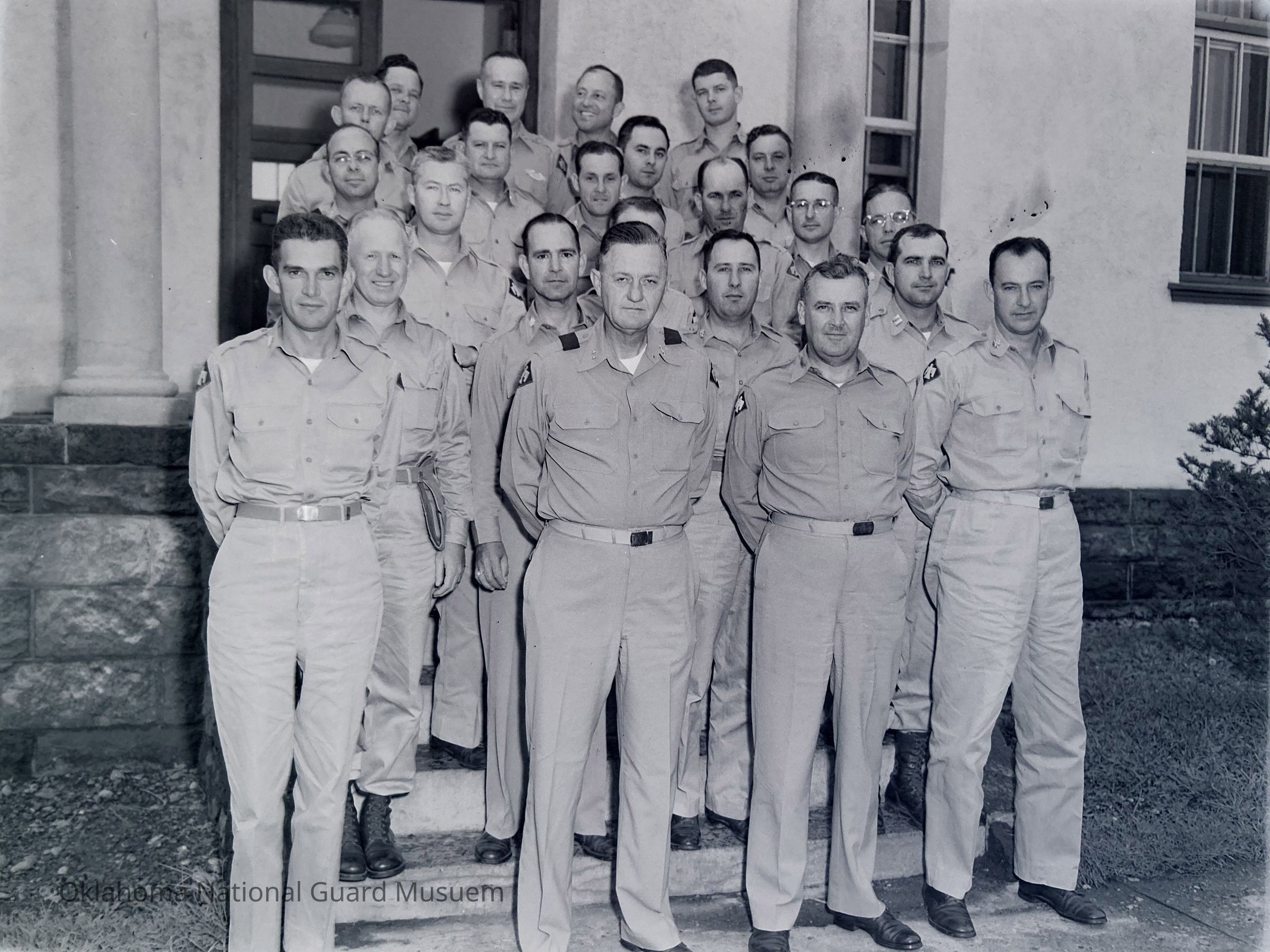 Negative of a group photo of General Styron and other officers on Hokkaido, Japan