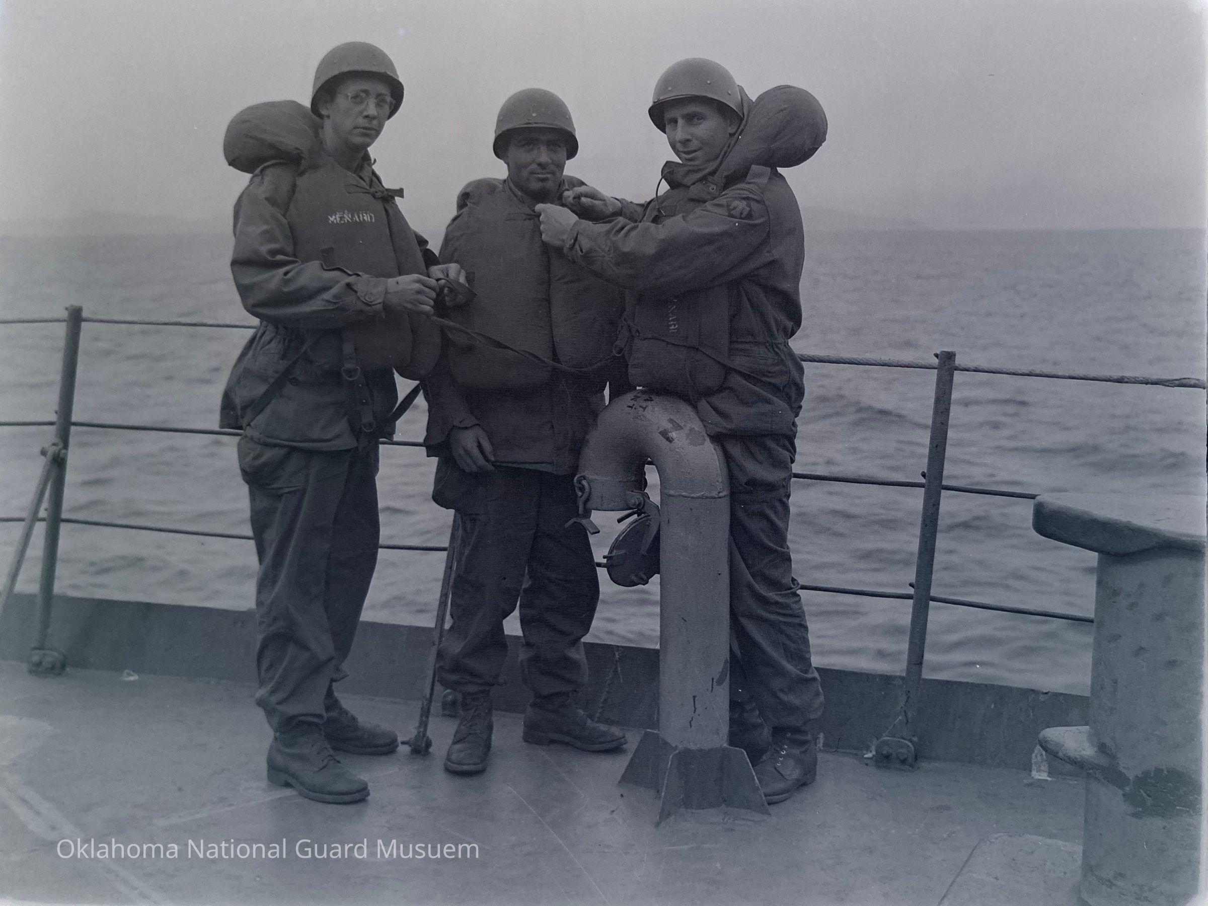 Group photo of soldiers onboard a ship