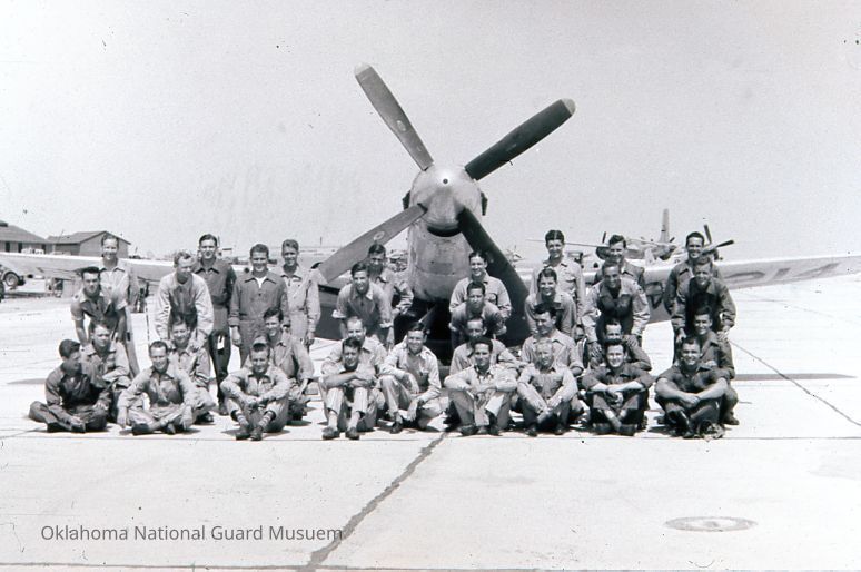 Group posing in front of P-51