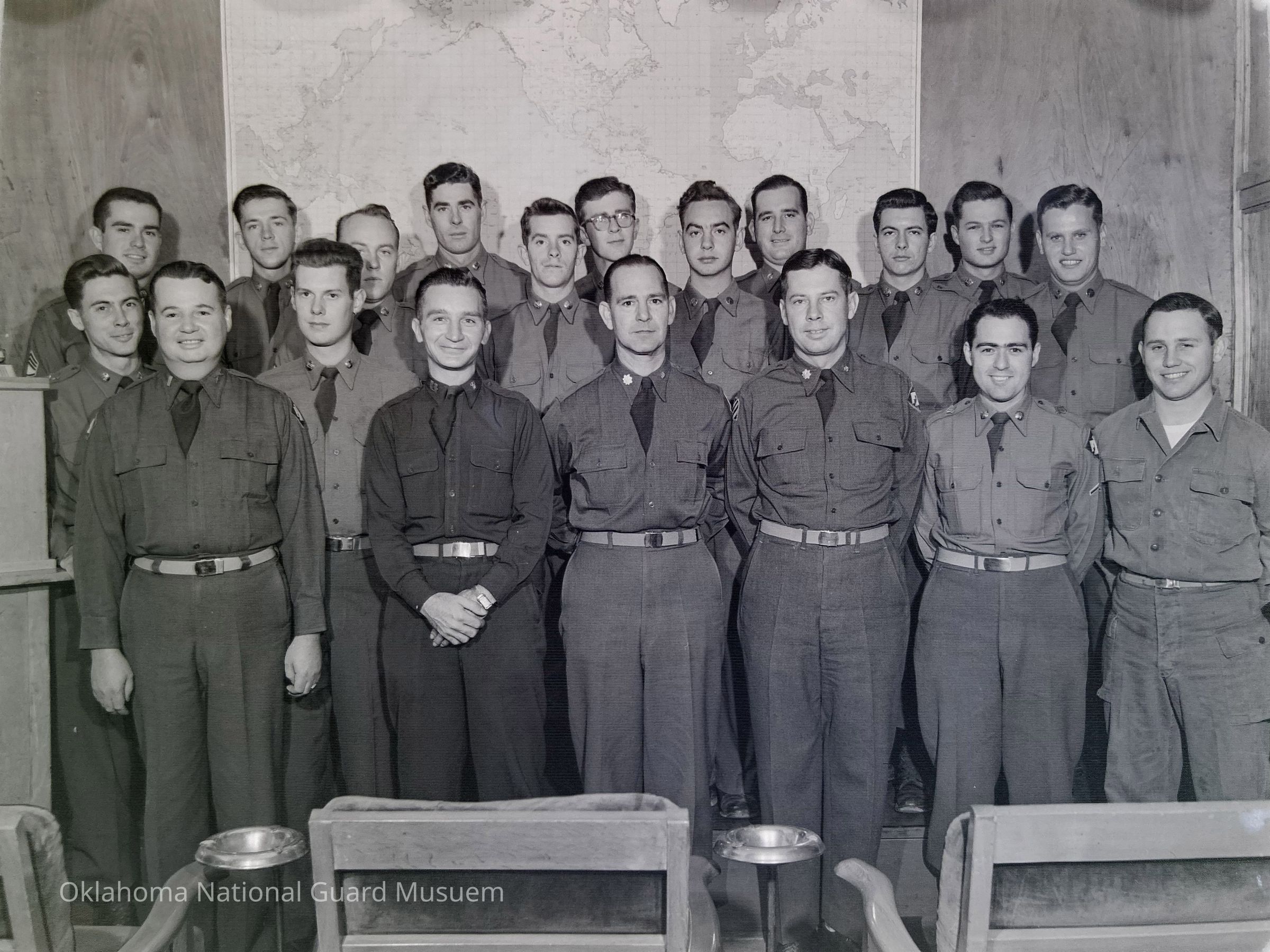 Group shot of soldiers in front of map