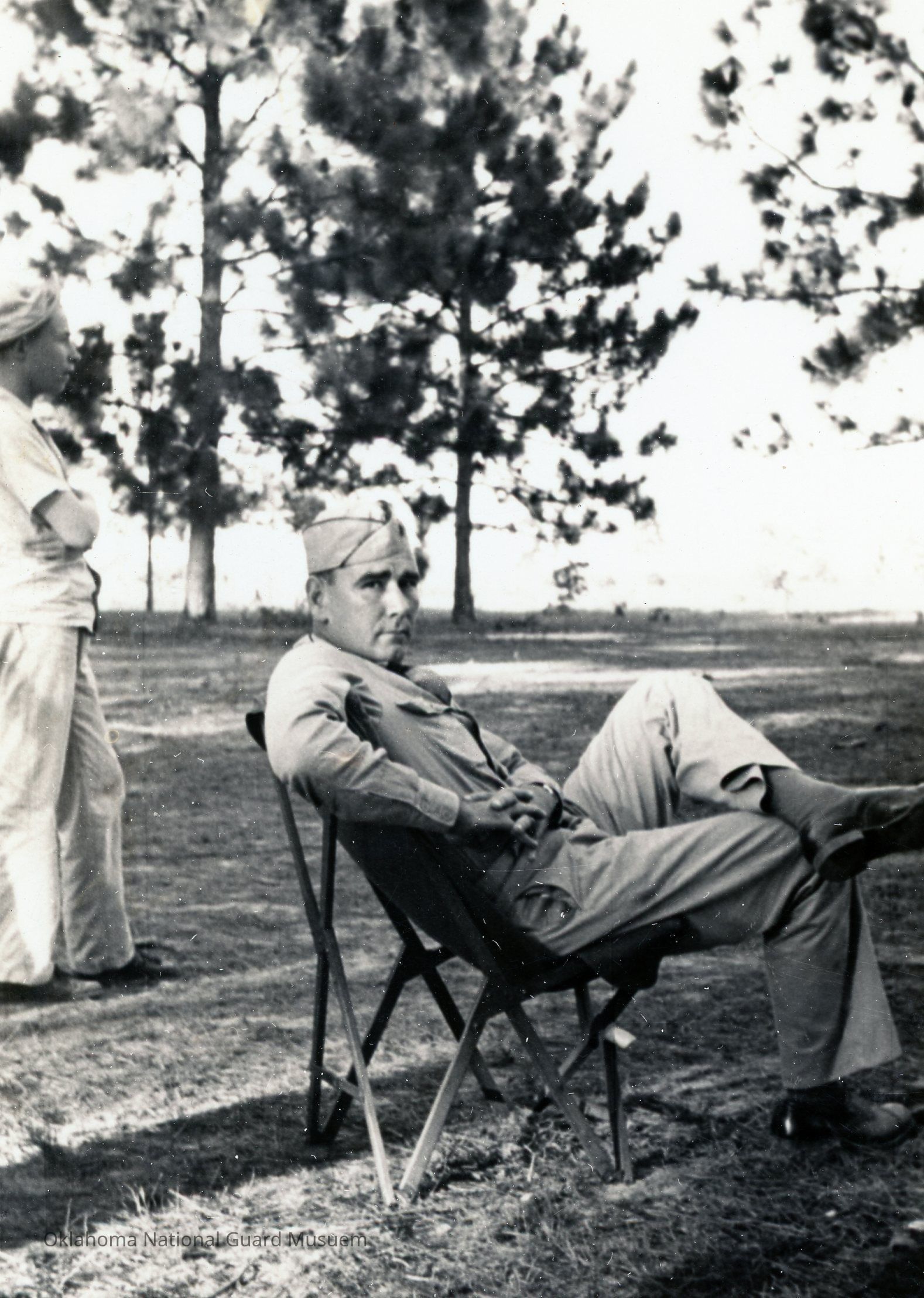 Hal Muldrow relaxing in chair during the Louisiana Maneuvers. 189th Field Artillery