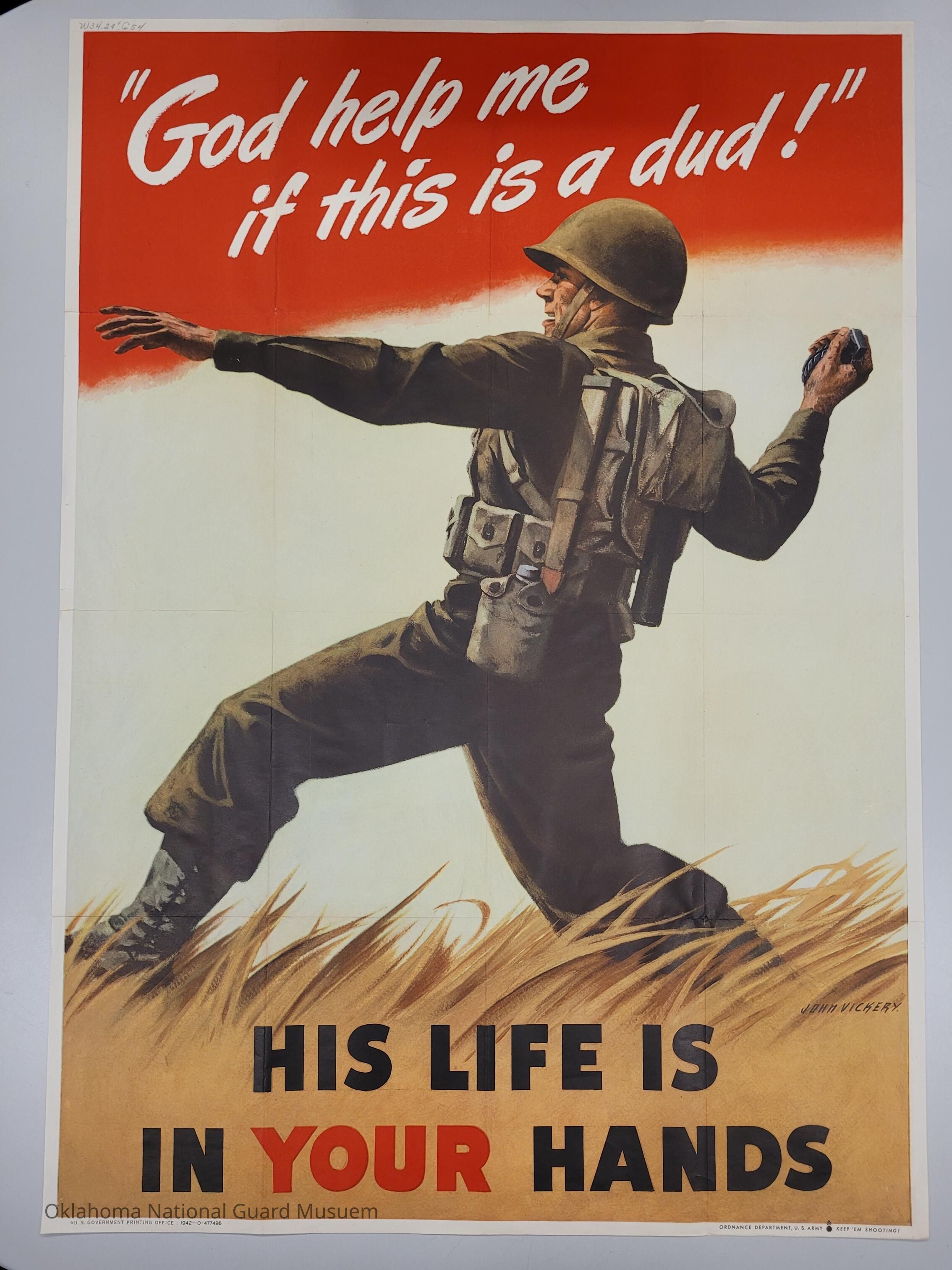 American Soldier tossing a grenade at the enemy. It declares - God help me if this is a dud! His life is in your handsCollection
