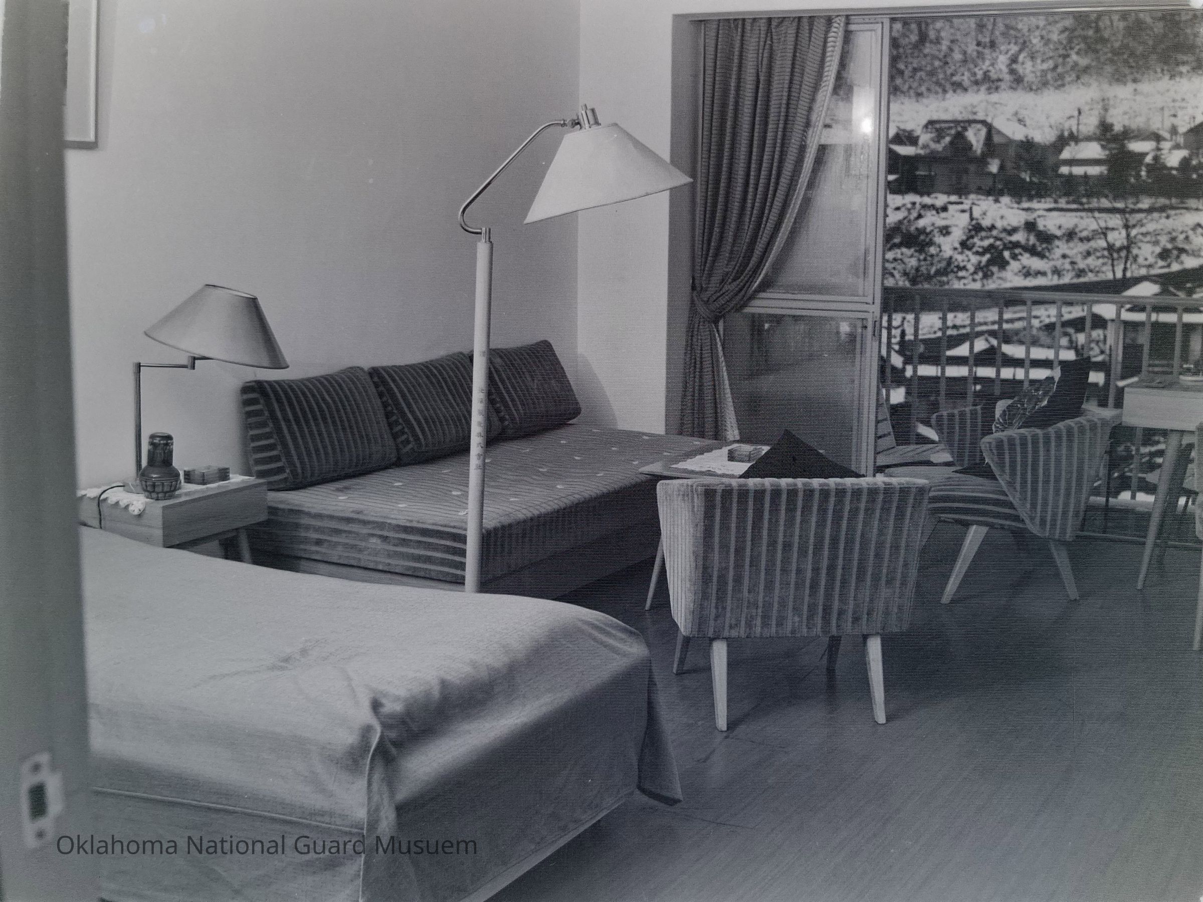 Negative of the interior of a modern hotel room on Hokkaido, Japan