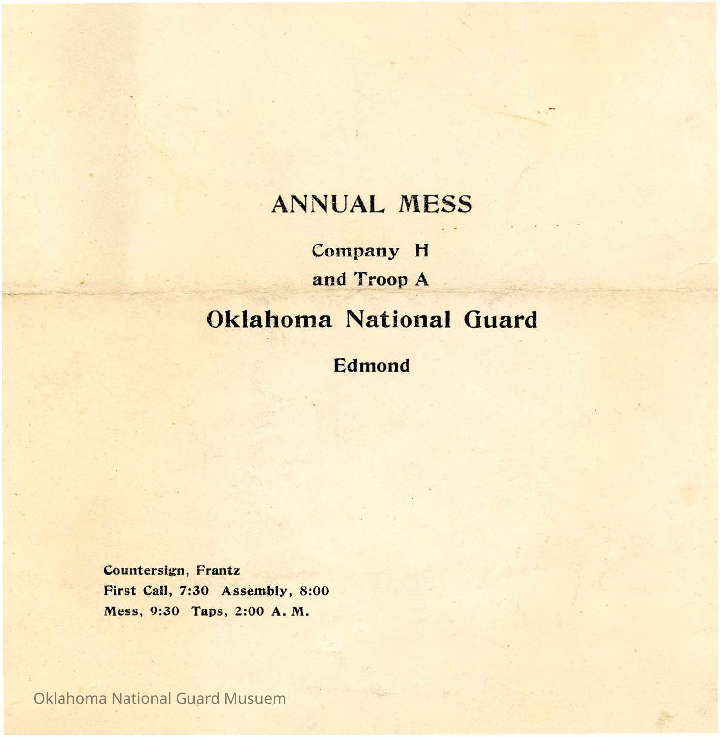Invitation to Annual Mess of Company A First Oklahoma Infantry and Troop A First Oklahoma Infantry
