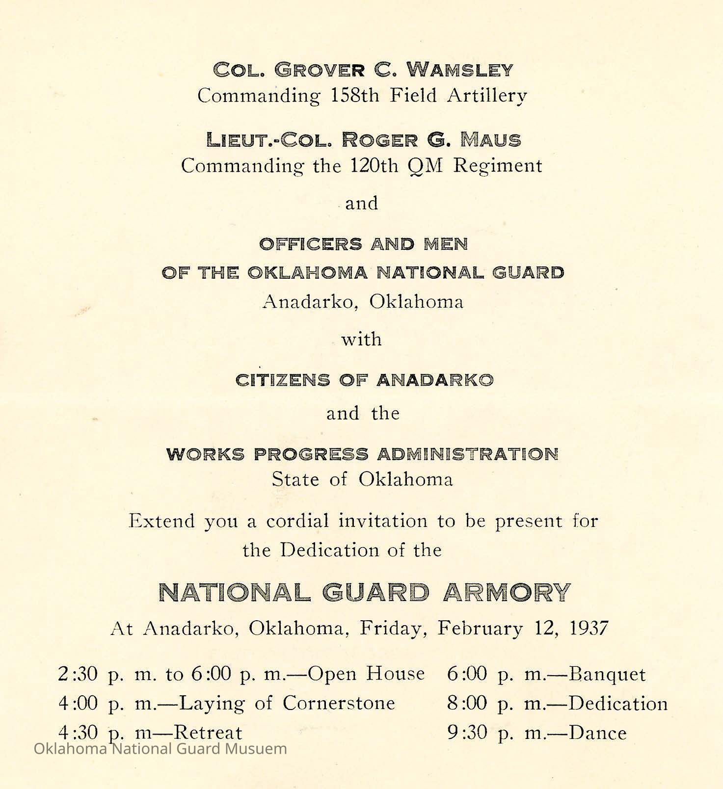 Invitation to the dedication of the Anadarko Armory