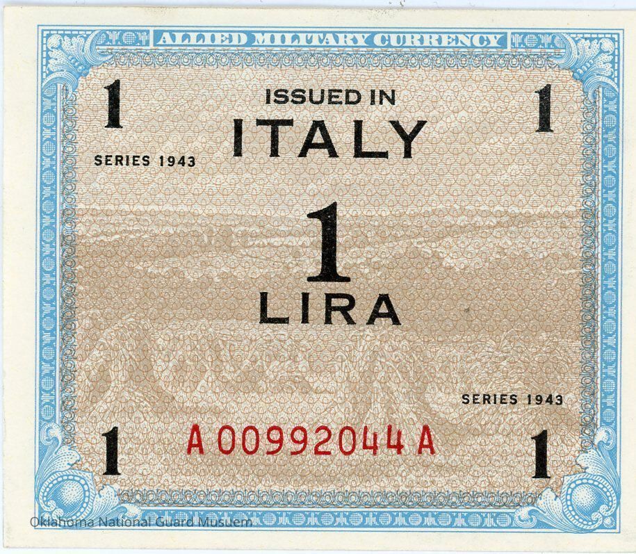 Italian Allied Occupation One Lira. Allied Military Currency issued in Italy. Series 1943Context