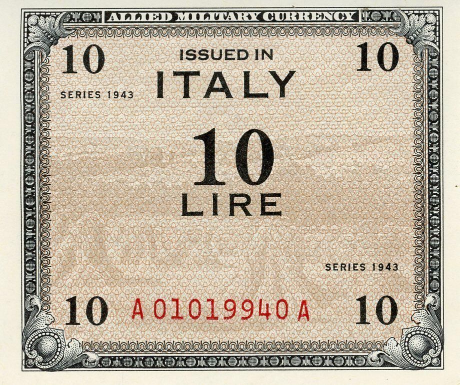 Italian Allied Occupation Ten Lire. Series 1943. Issued in Italy.Context