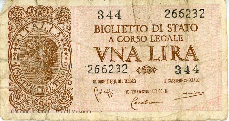 STATE BANKNOTE LEGAL TENDER ONE LIRA ITALY MINISTRY OF THE TREASURY