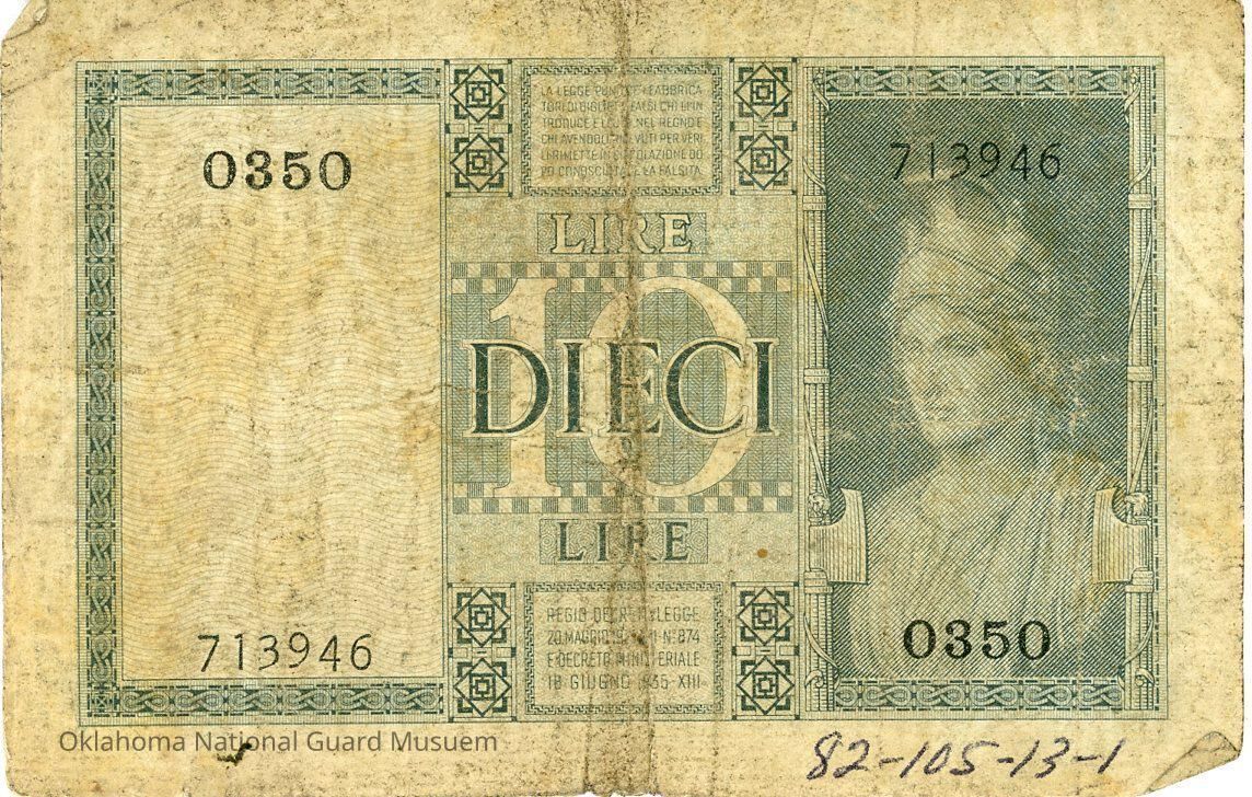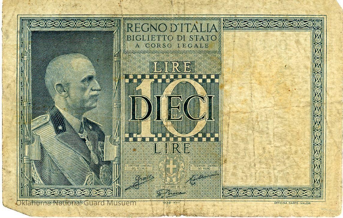 KINGDOM OF ITALY STATE TICKET LEGAL TENDER ITALIAN LIRA 10 TEN ITALIAN LIRA