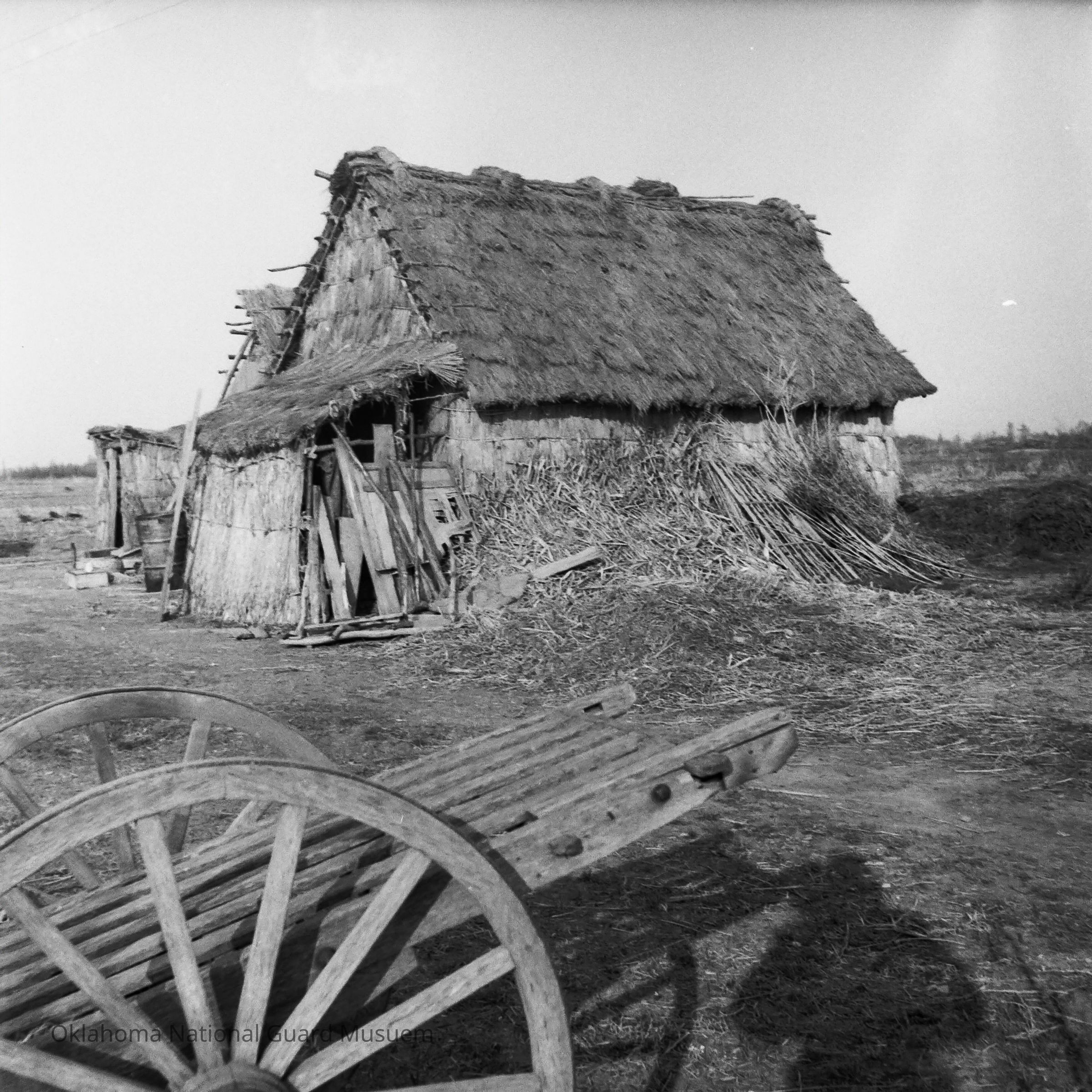 Negative of a barn made from thatch