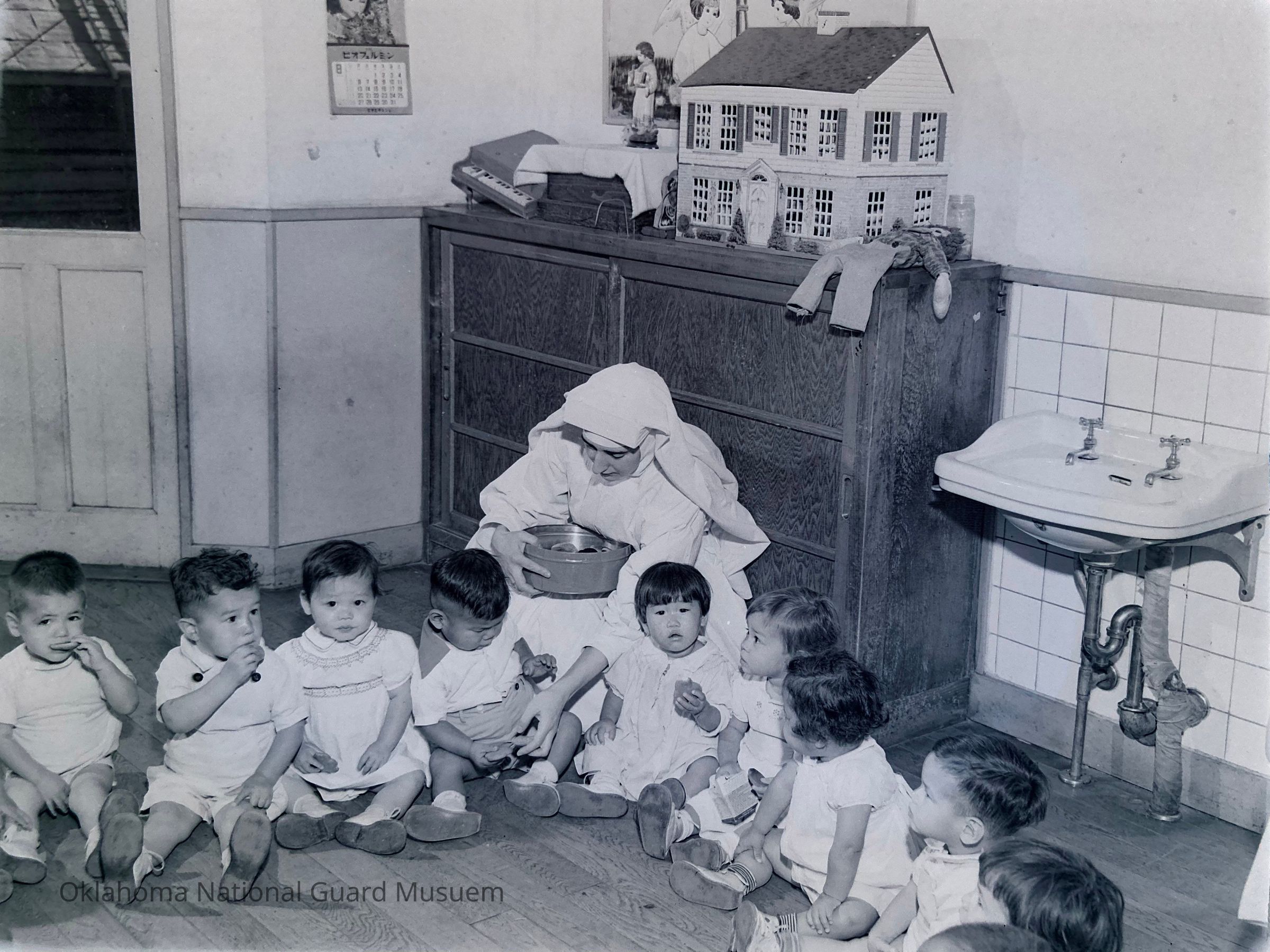 Japanese children with a Nun
