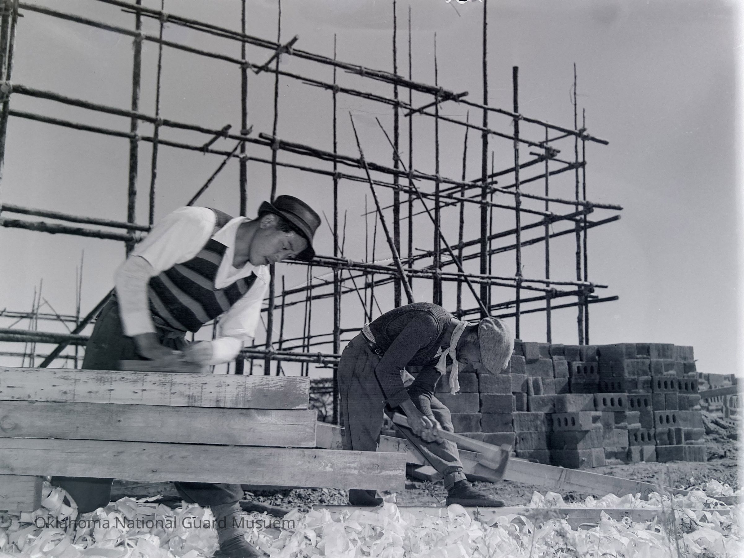 Building construction, Scaffolding, Construction workers, Lumber, Wood