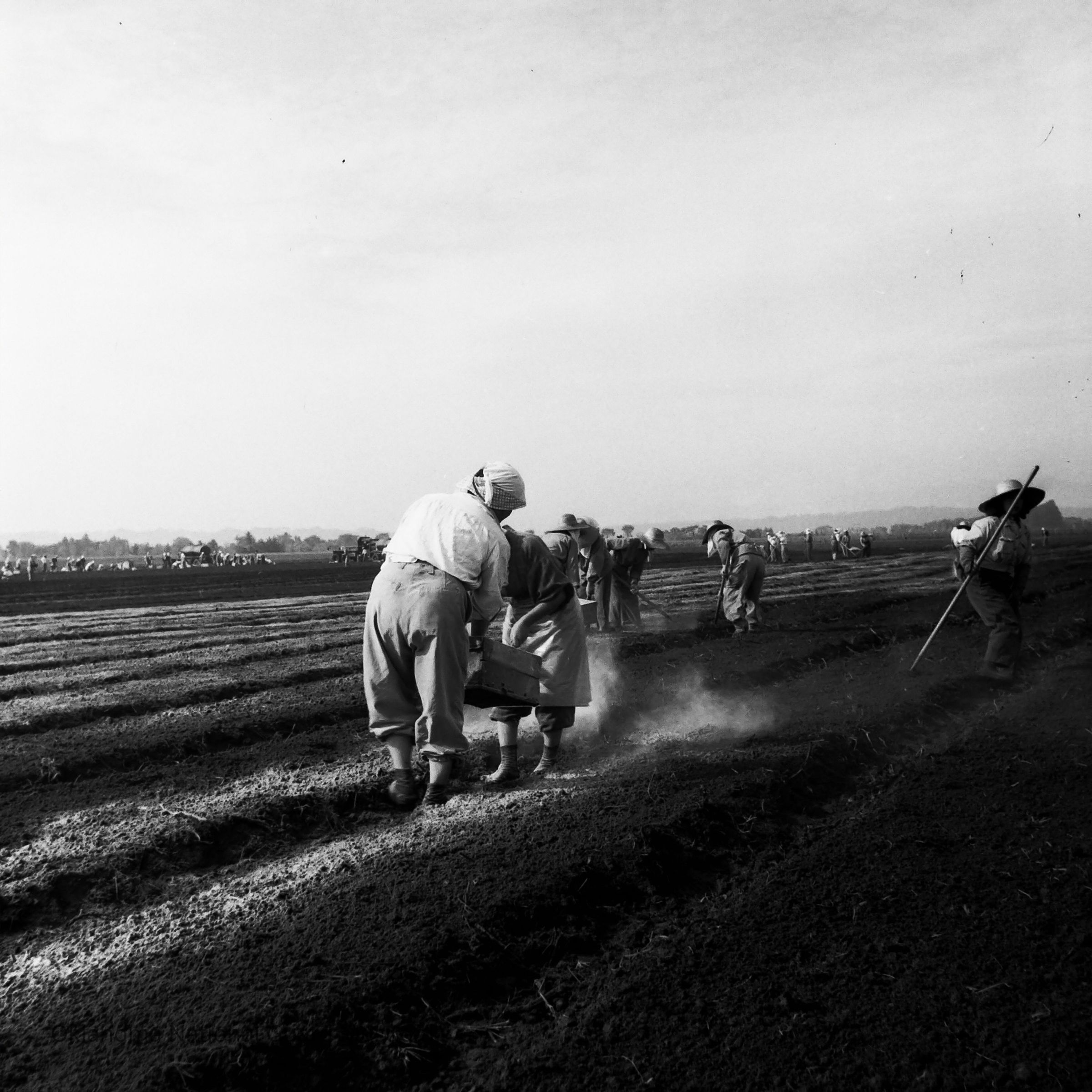 Negative of Japanese women working in farm field