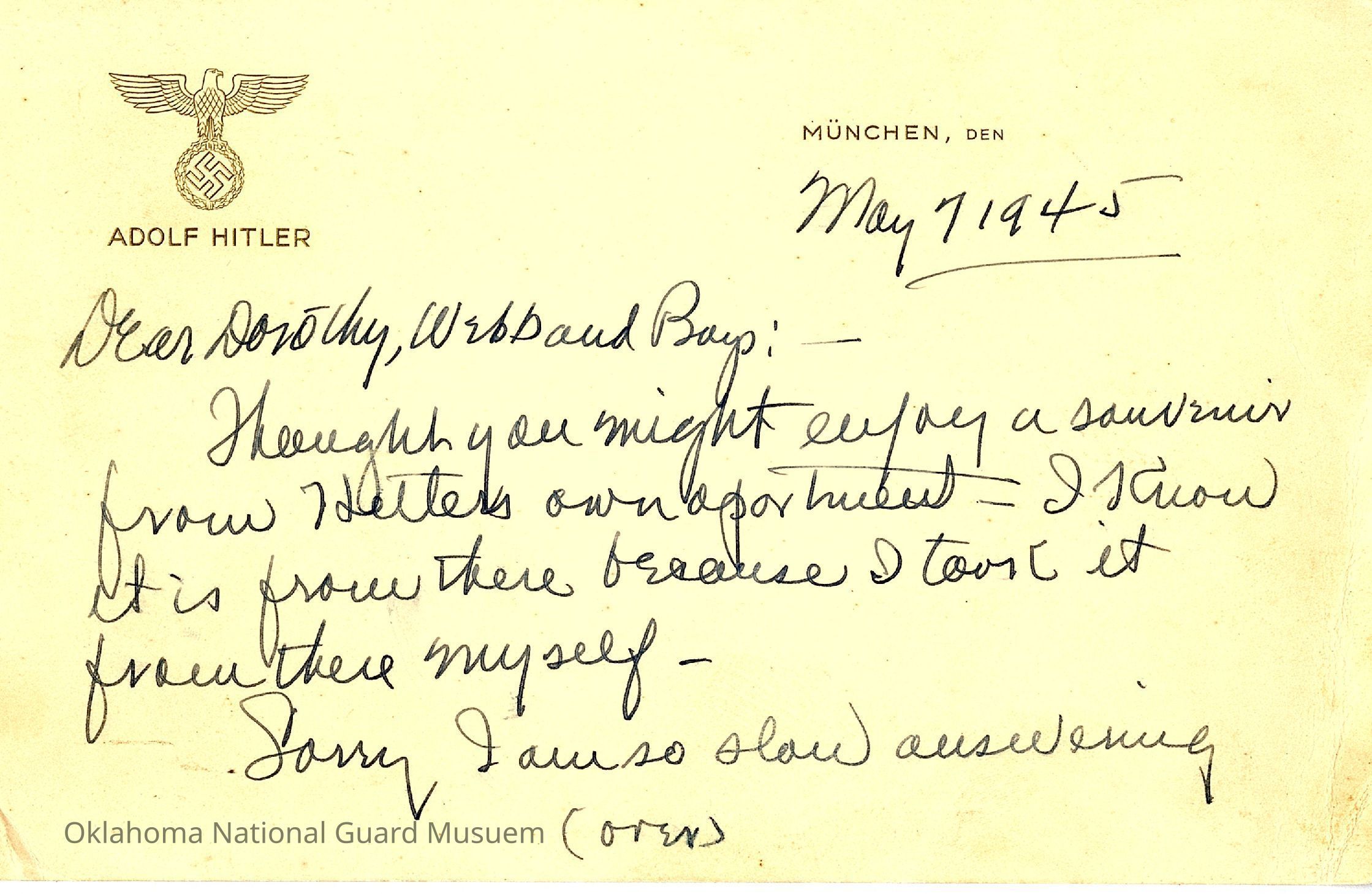 Thought you might enjoy a souvenir from Hitler's own apartment. I know it is from there because I took it from there myself.