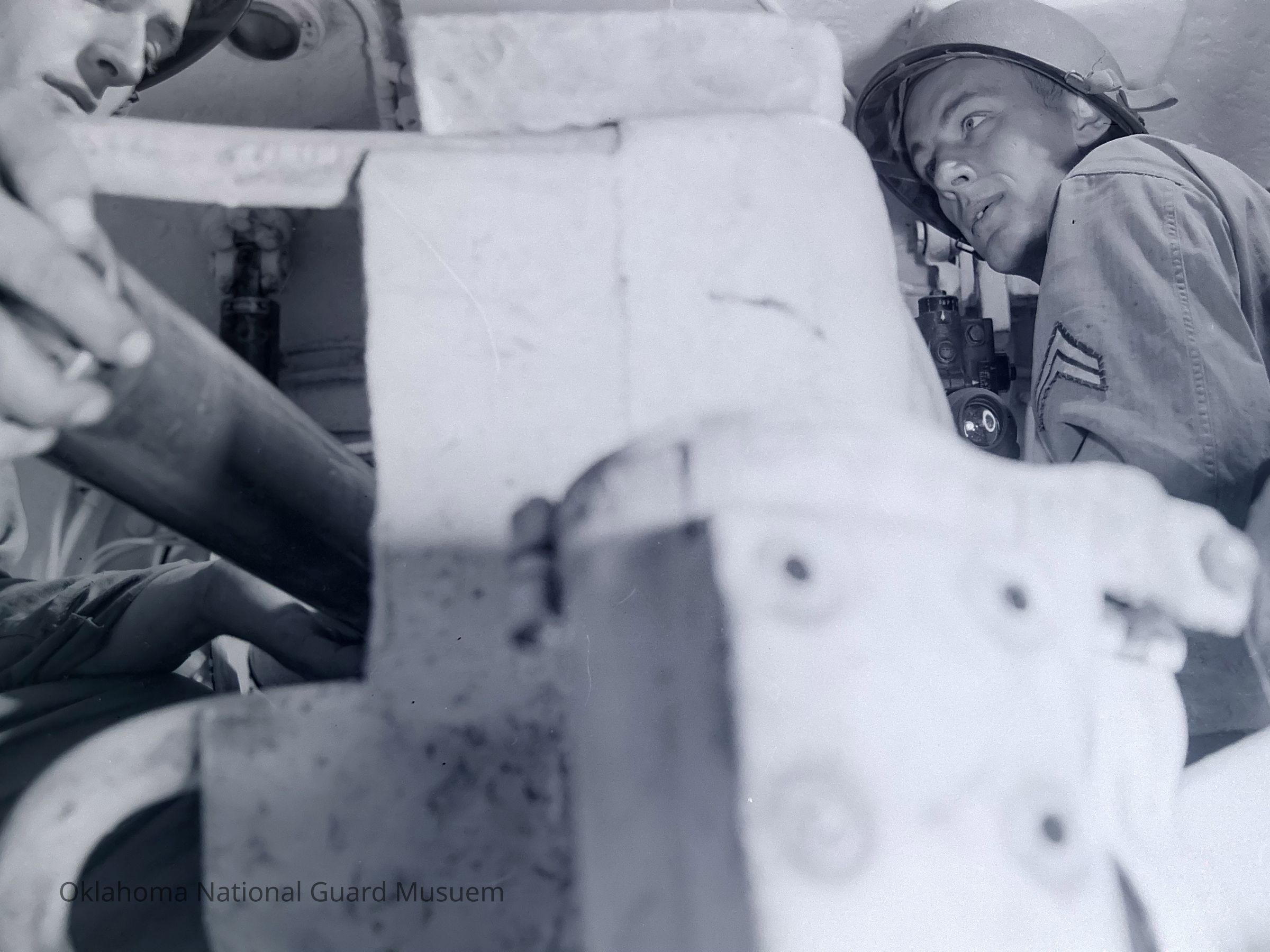 Negative of the loading the main gun inside a tank on Hokkaido, Japan