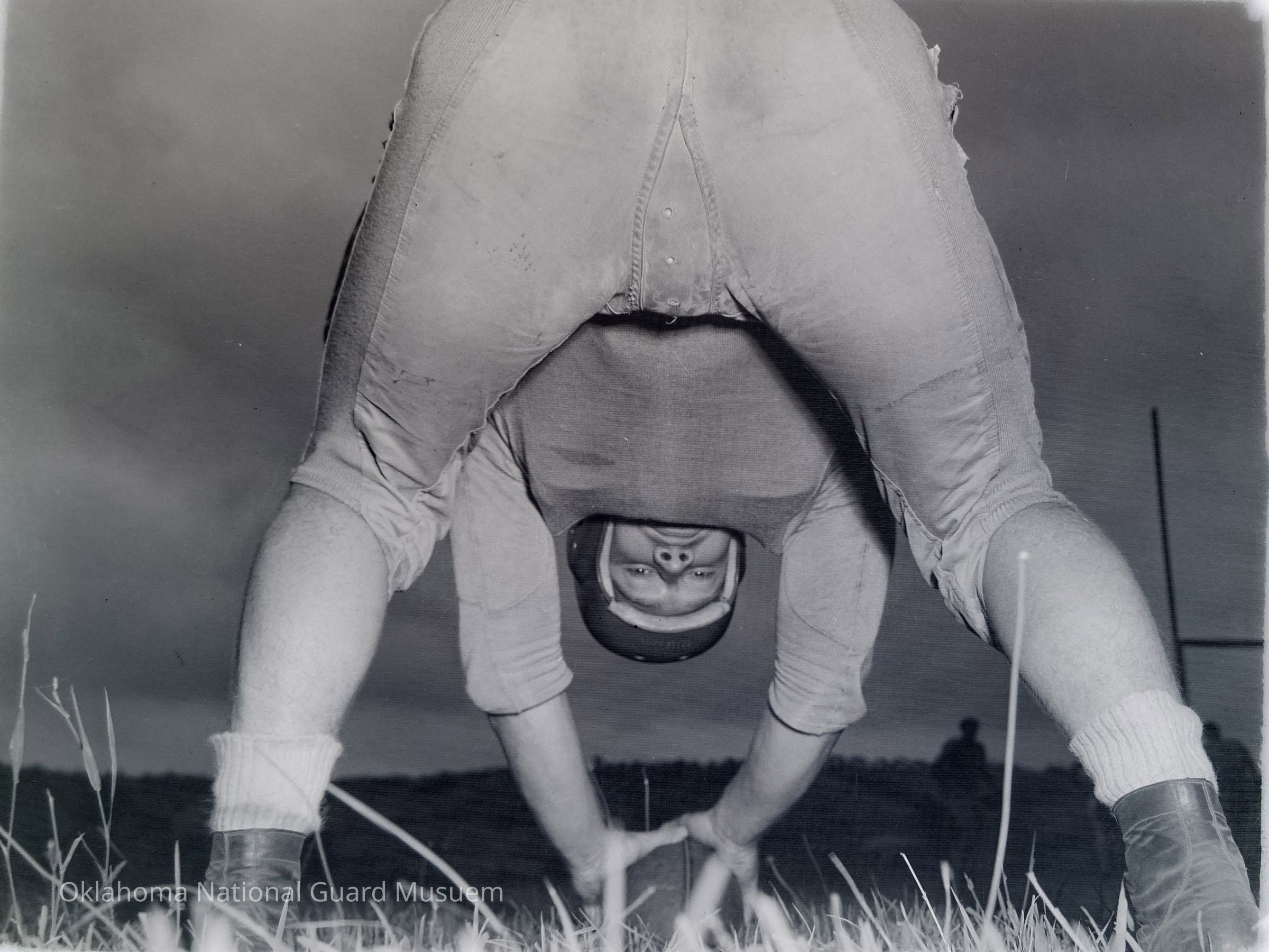 Looking between the legs of a football center