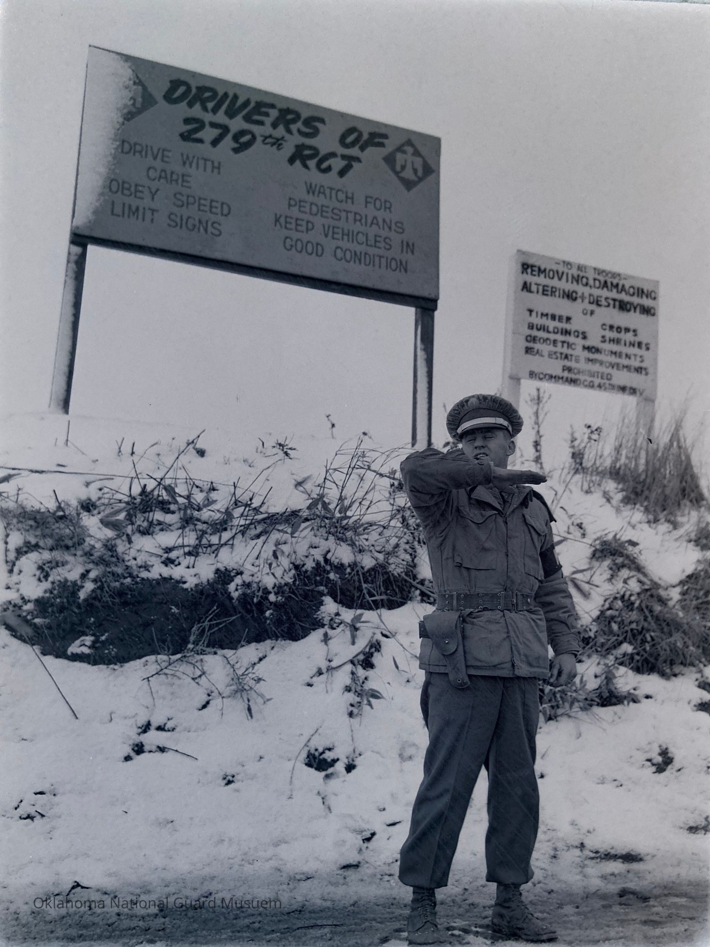 Negative of Military Police directing traffic to the 279th Regimental Combat Team camp