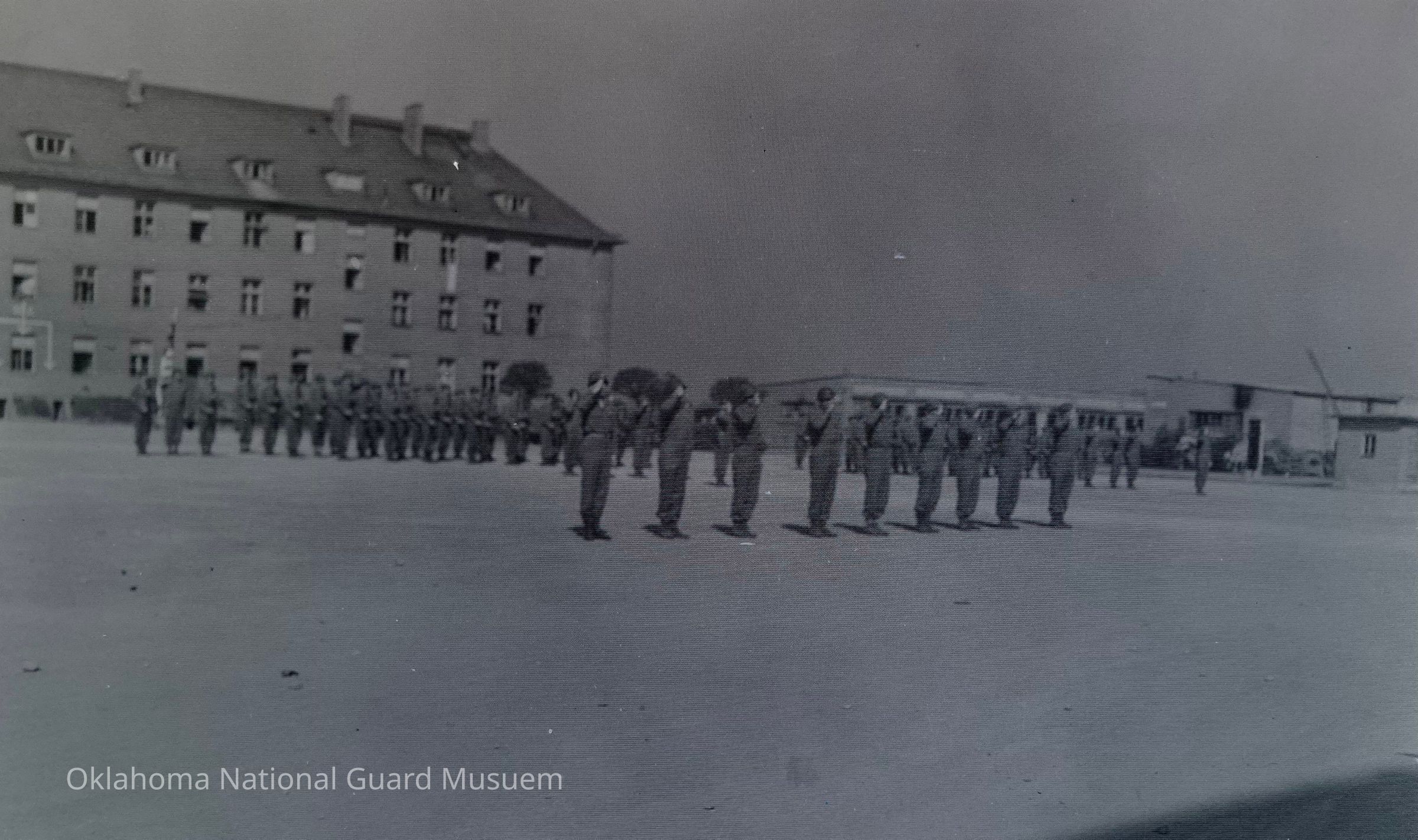 Negative of a military review of the120th Engineer Battalion