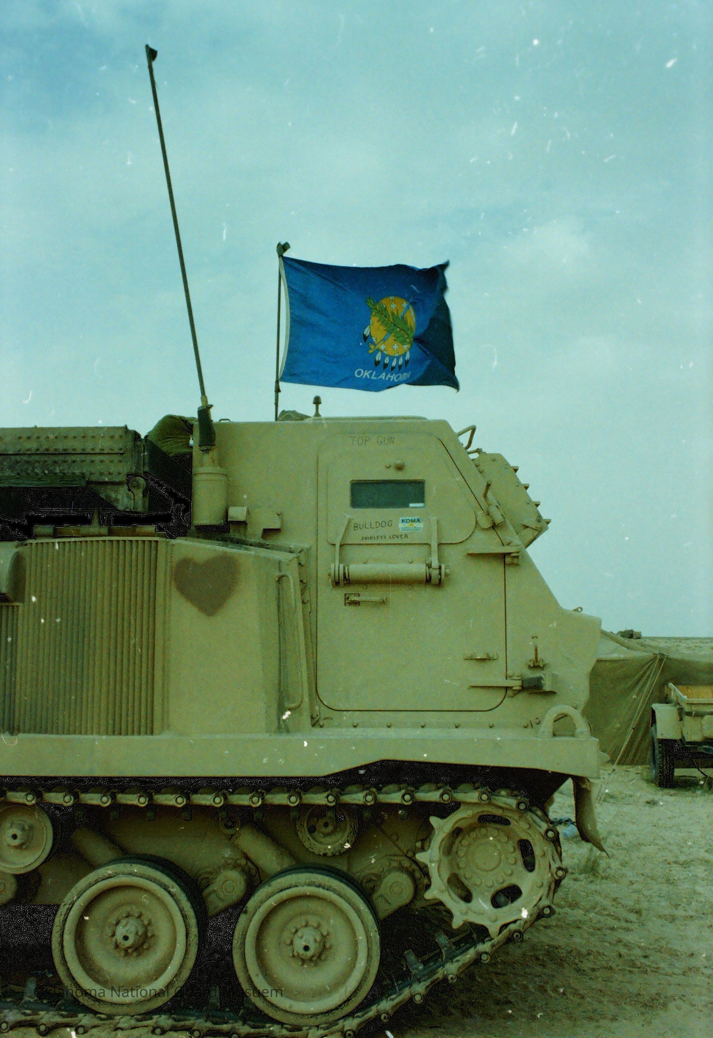 MLRS flying the Oklahoma flag. 158th Field Artillery