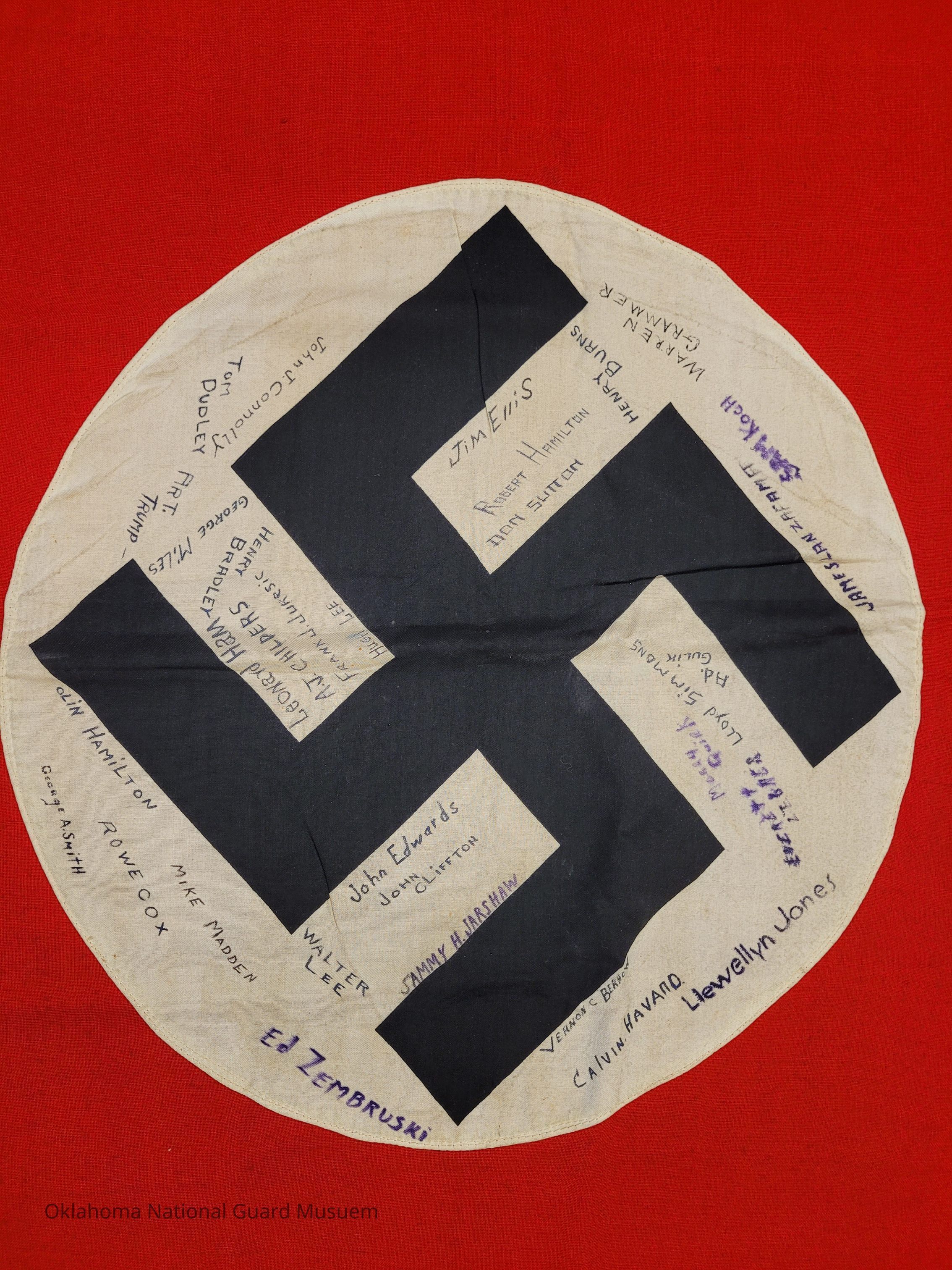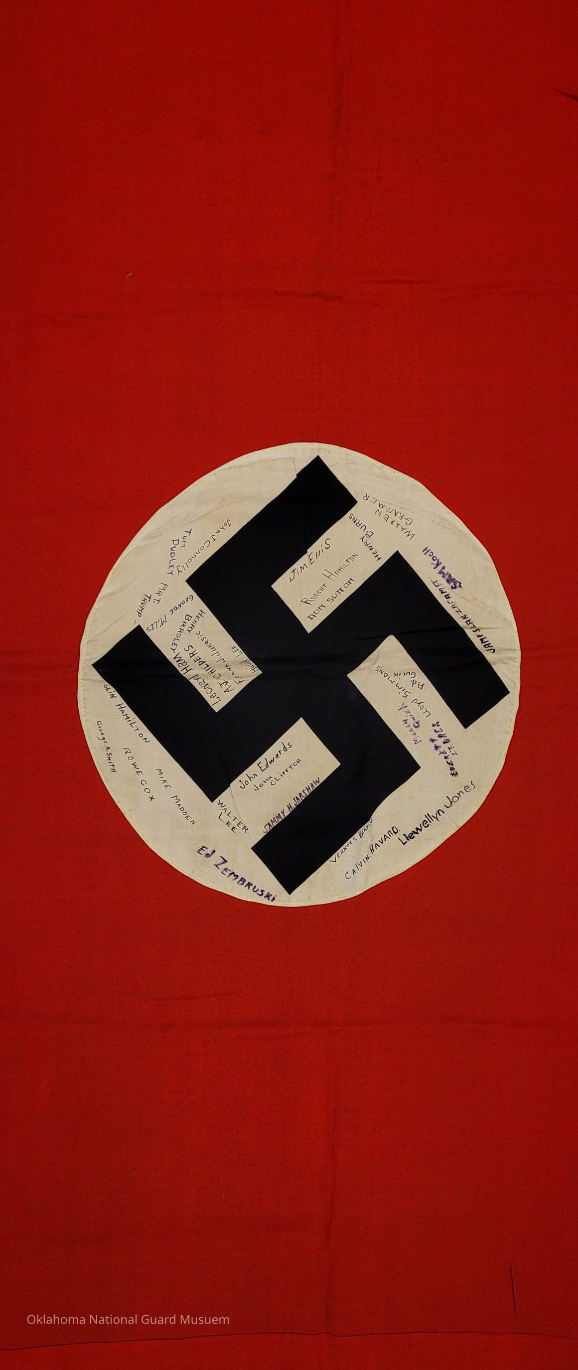 Nazi flag signed by 180th Infantry Headquarters Company Military Police Platoon soldiers