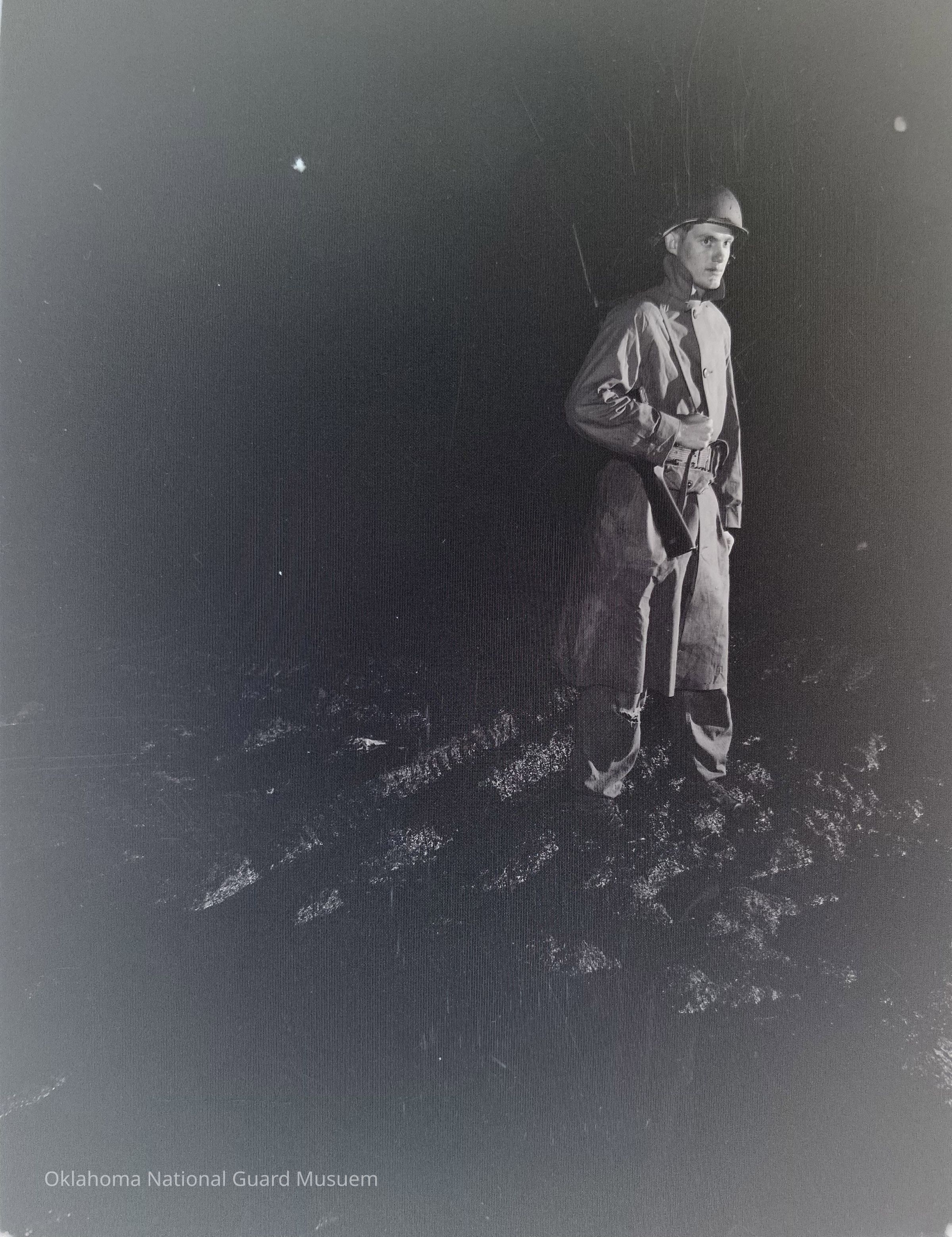 Negative of a night photo of a soldier on guard duty on Hokkaido, Japan
