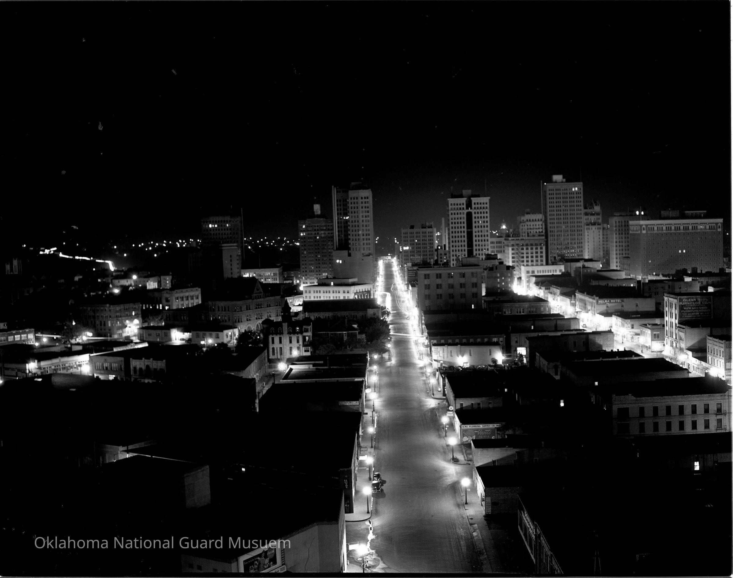 Negative of a night photo of Fort Worth