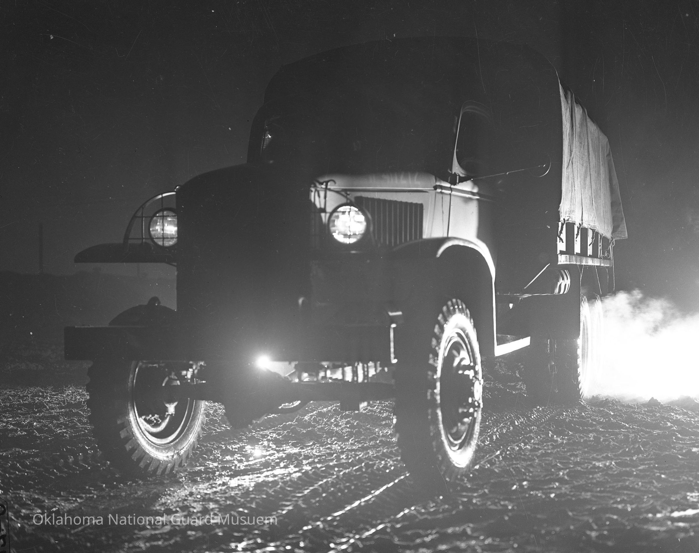 Negative of a night photo of military truck