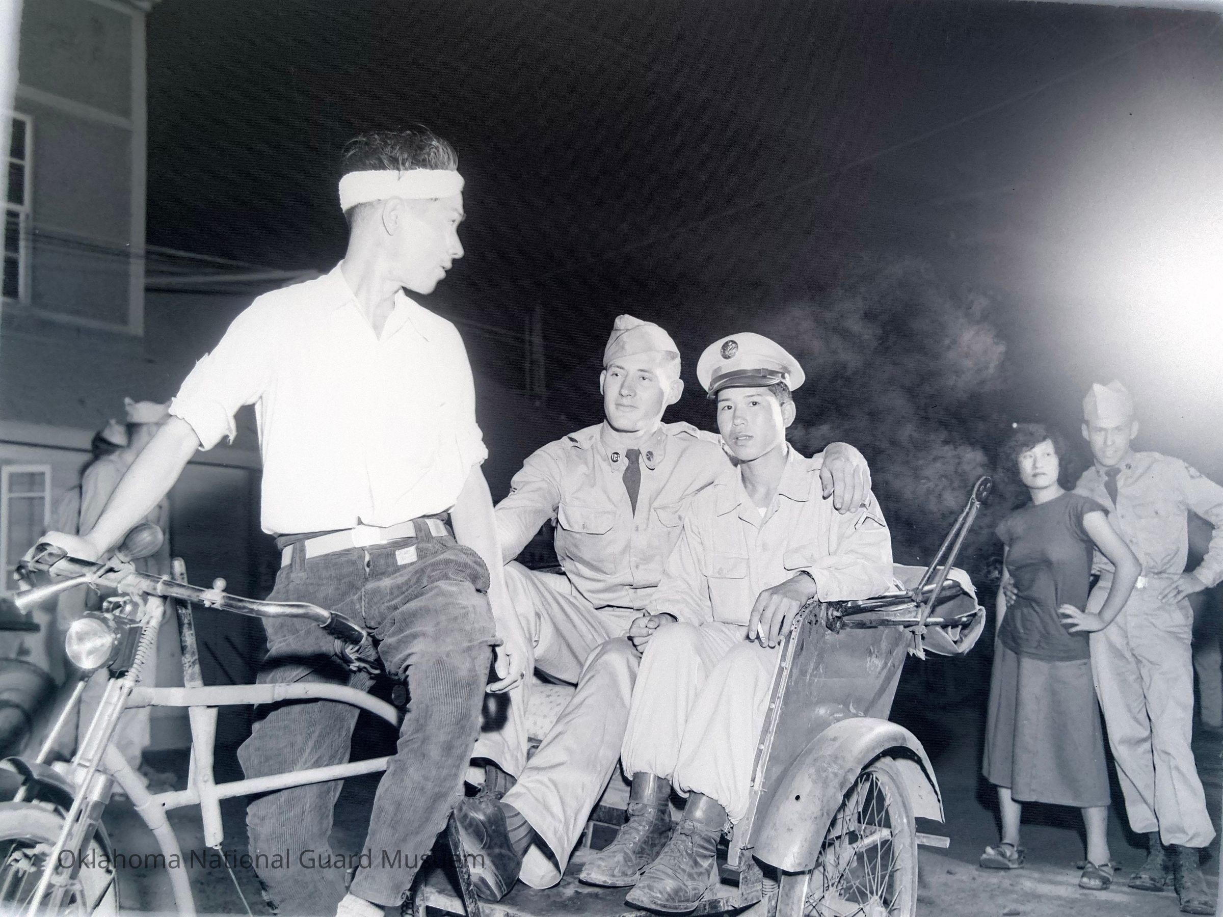 Night scene: soldiers, Japanese National Police Reservist, and Japanese women