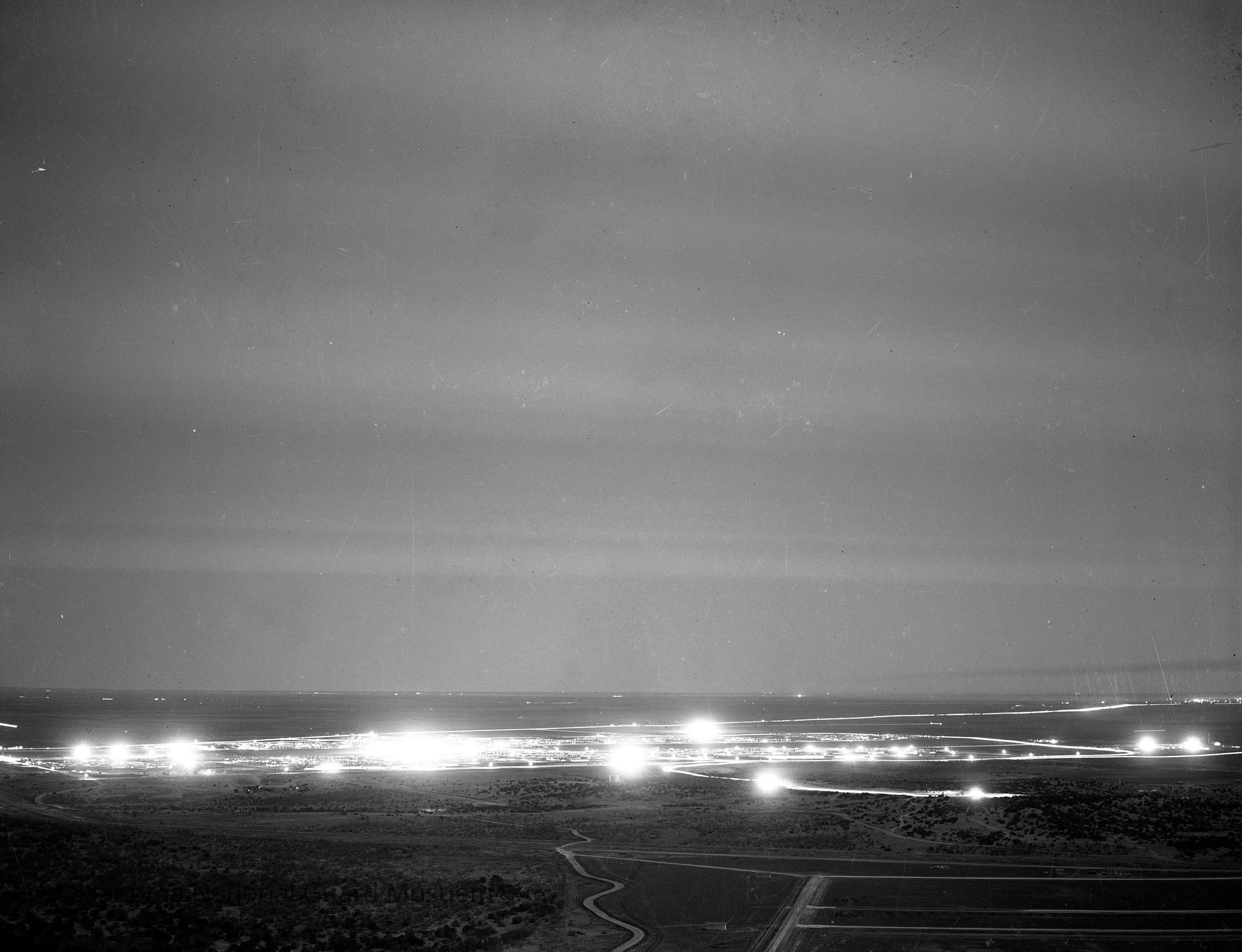 Negative of a night view of Camp Barkeley