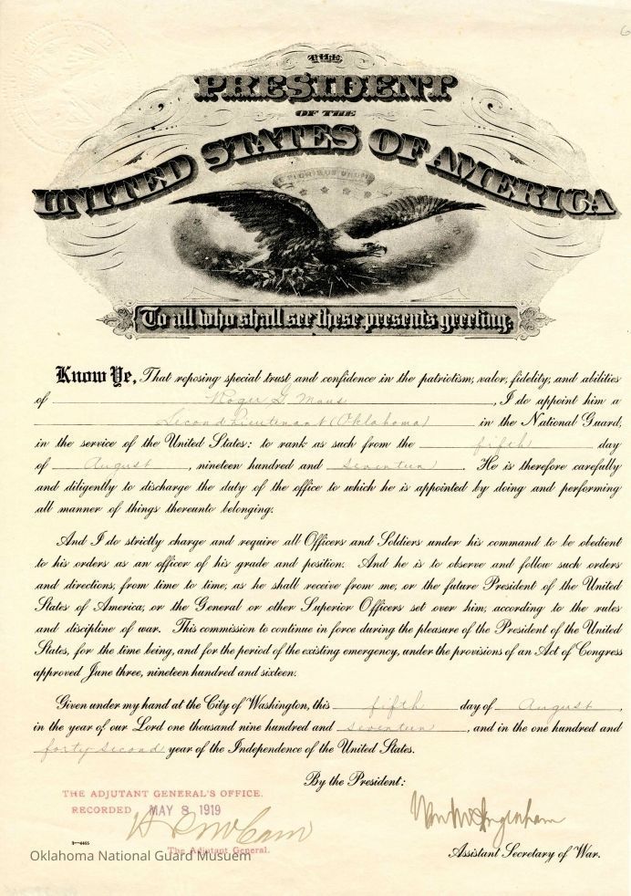 Promotion and commission of Roger G Maus to Second Lieutenant