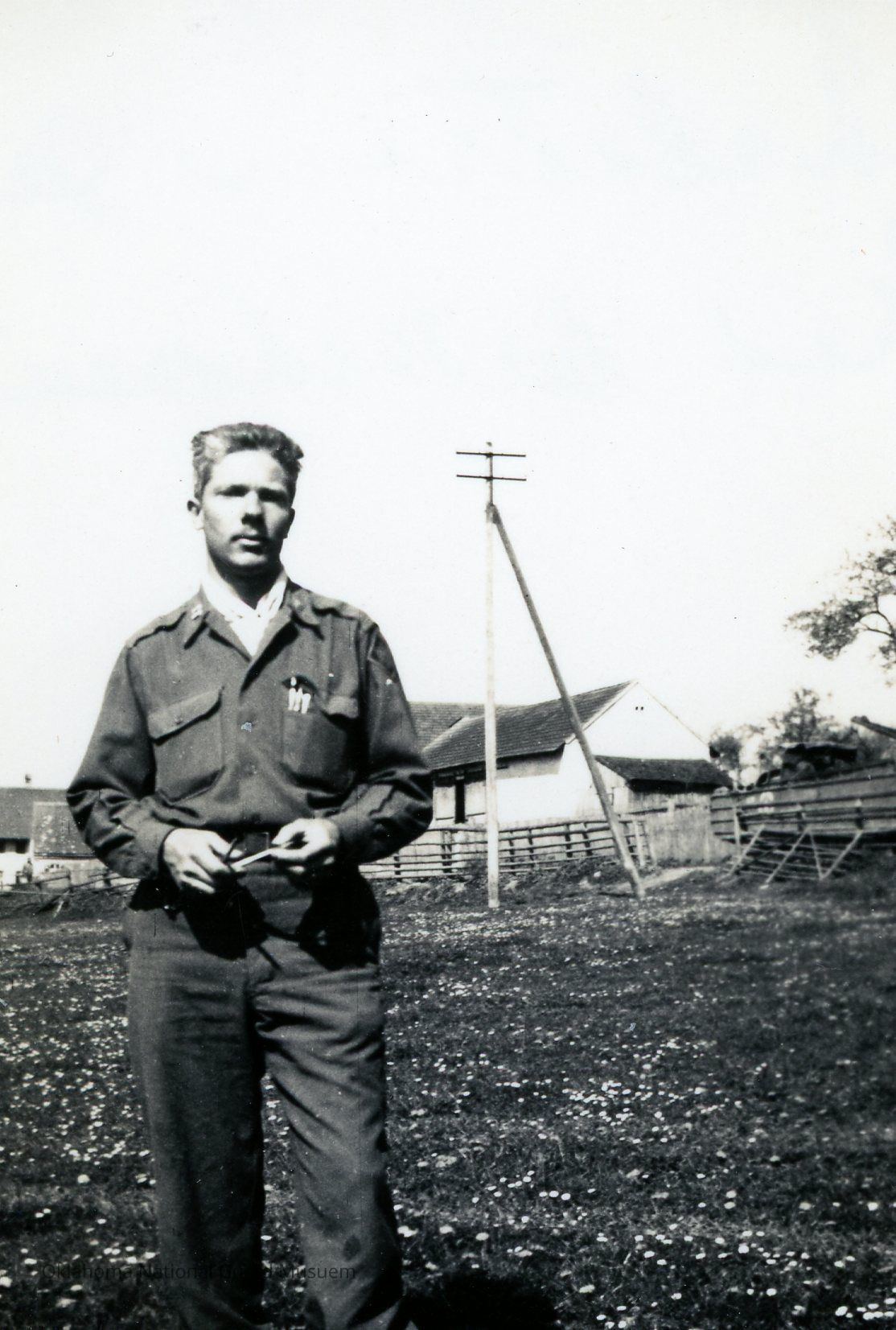 Harry E. Chalstrom Jr. standing in a farm field Medical Detachment 160th Field Artillery