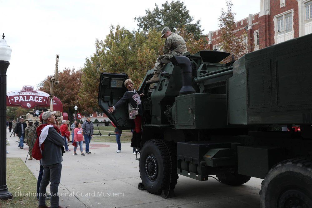 Woman hangs out of truck during Family Weekend at University of Oklahoma