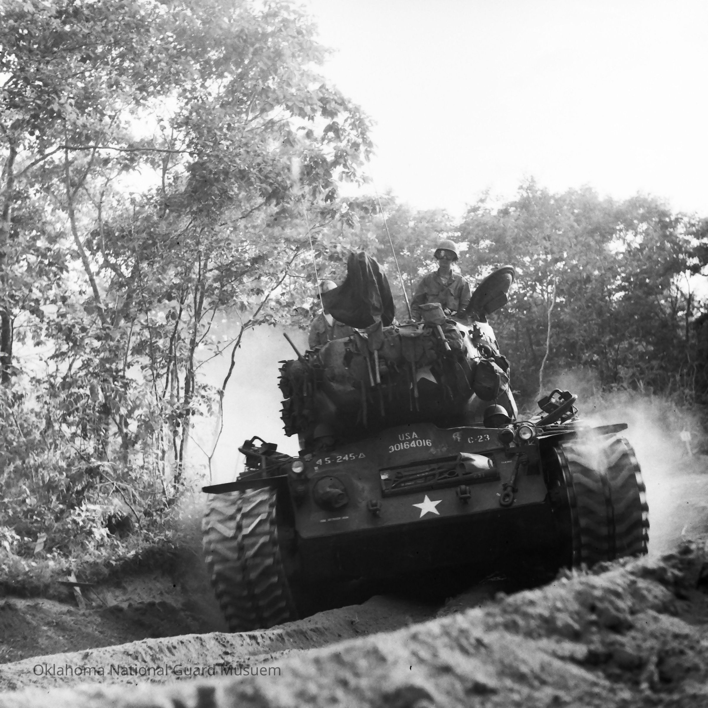 Negative of an oncoming tank. 245th Tank Battalion