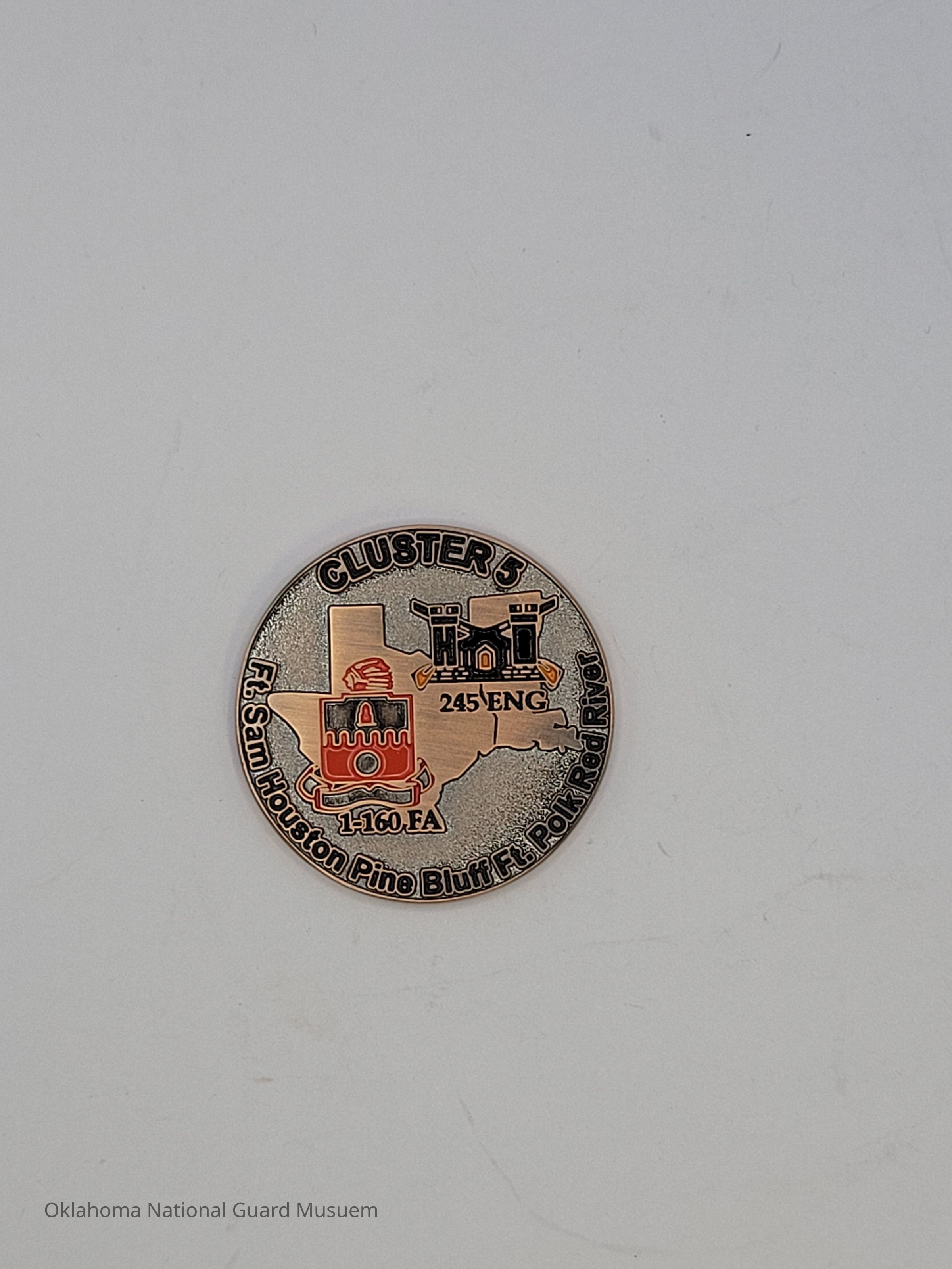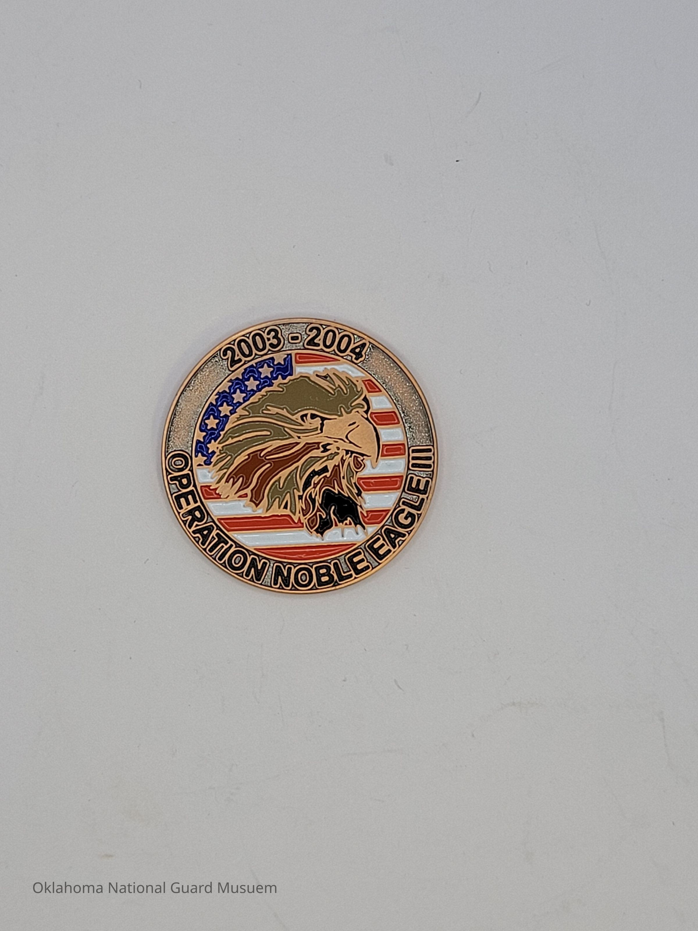 Operation Noble Eagle III challenge coin. Bald eagle on the obverse with outline of Texas, Arkansas, and Louisiana on the reverse. Operation Nobe Eagle focused on homeland defense of armories and federal instillations after 9/11 attacks
