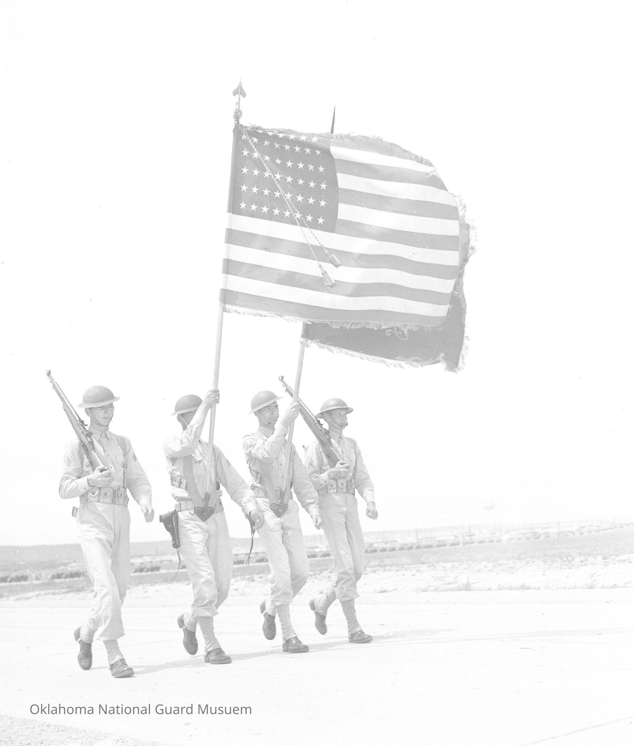 Soldiers, Rifles, Shoulder arms, Marching, Flags, Military flags, Color guards
