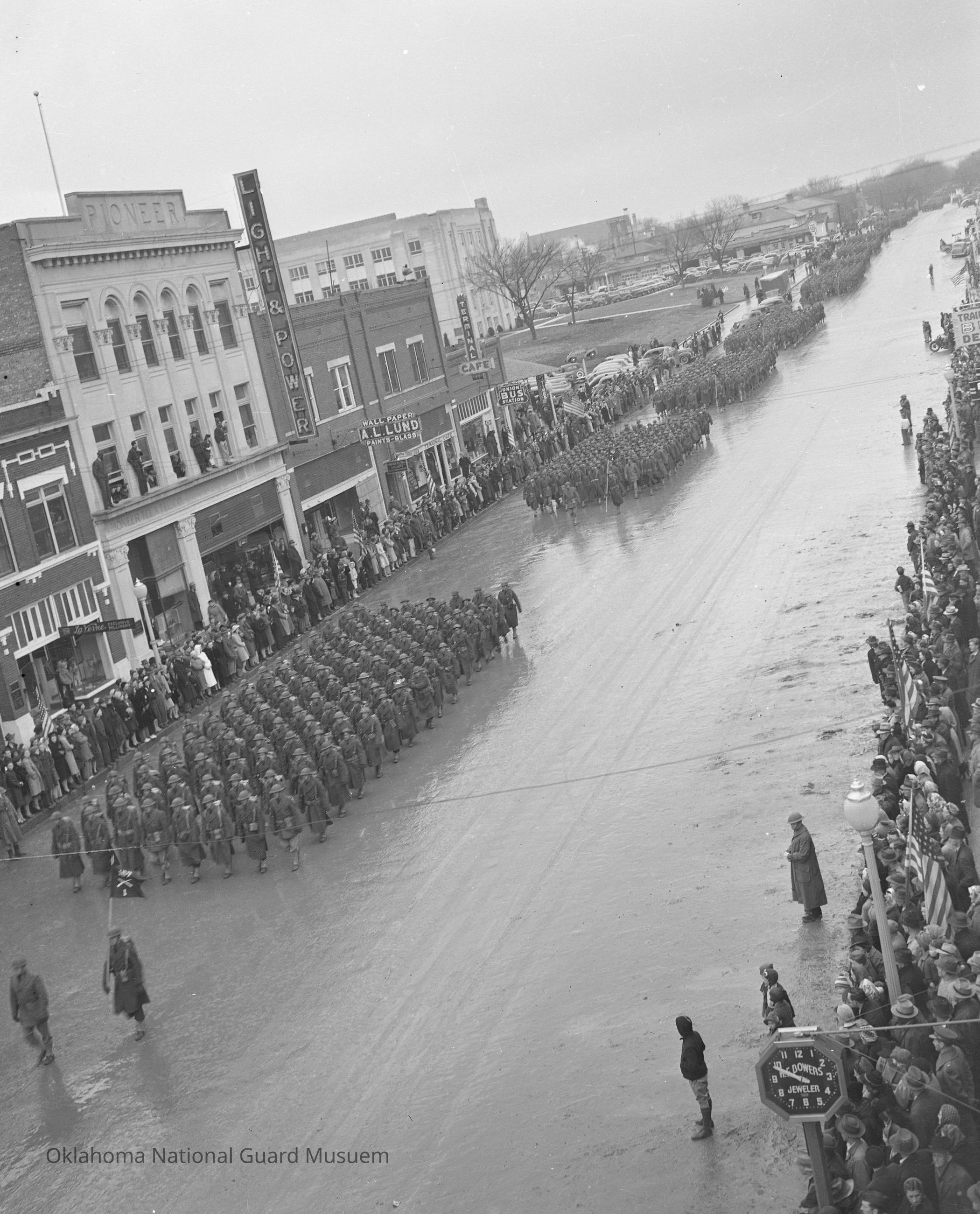 Soldiers, Military parades & ceremonies, Audiences, Spectators, Downtown districts, Marching